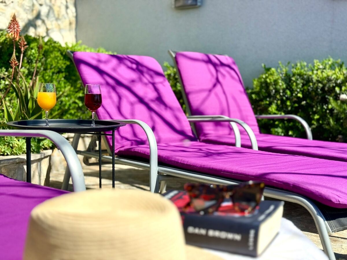 In front of the house there are two furnished terraces - one of which has sun loungers - and an outdoor shower.