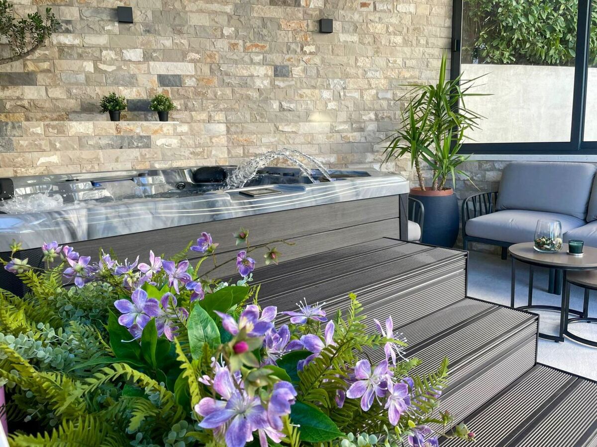 There is also a glazed terrace with a hot tub that can be fully enclosed on cooler days, ideal for relaxing.