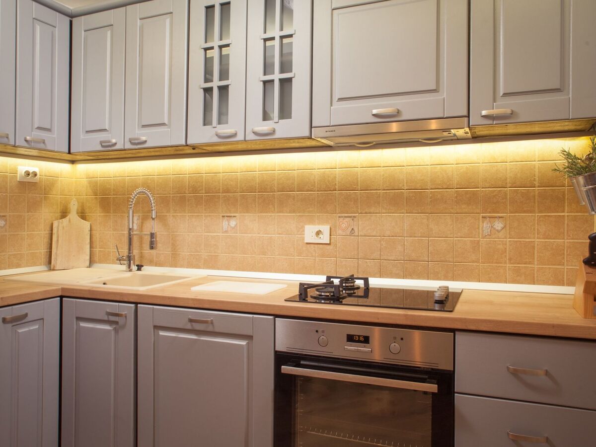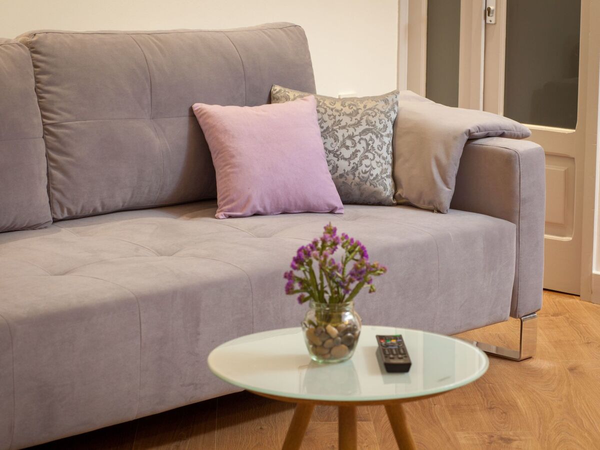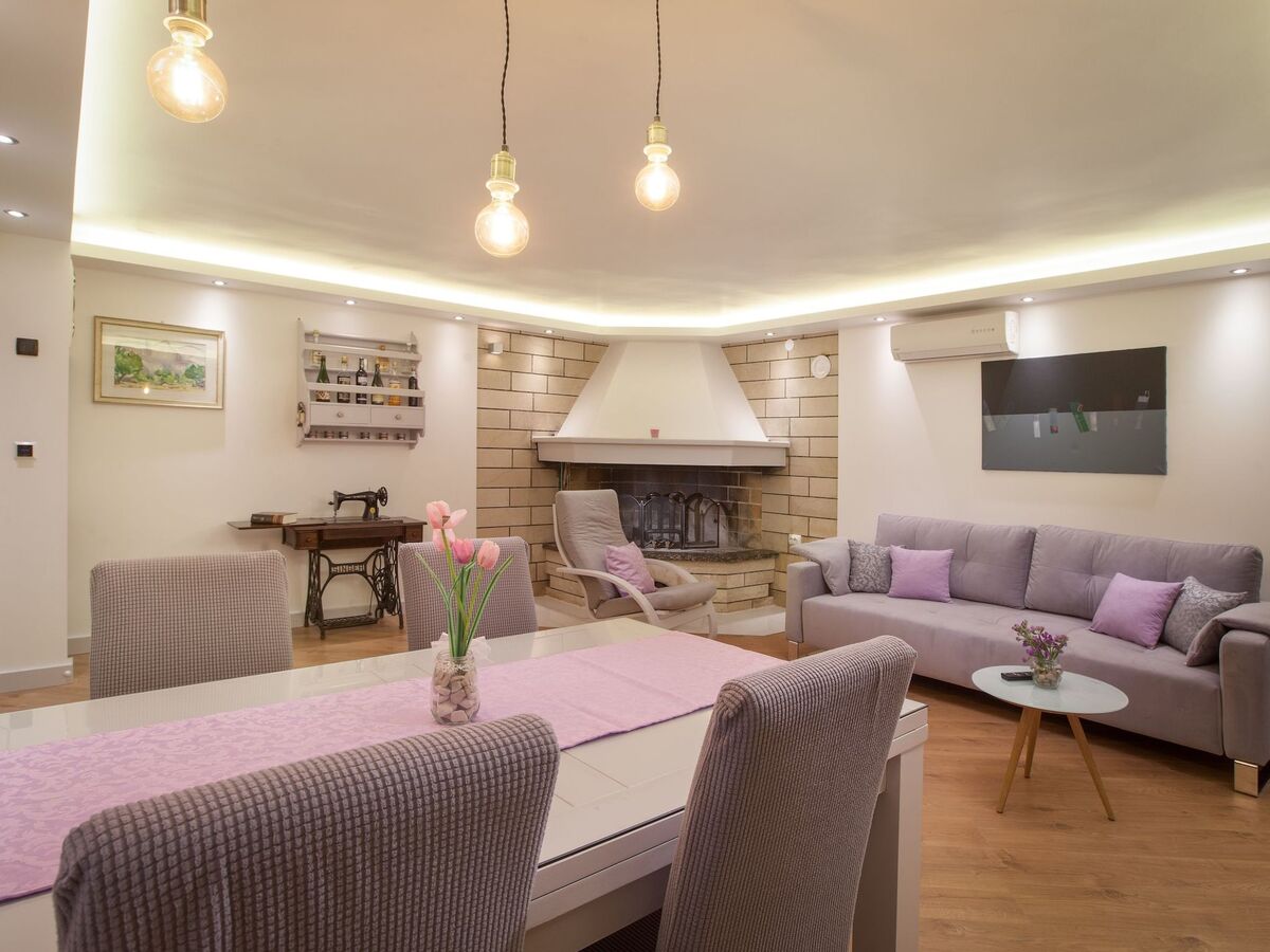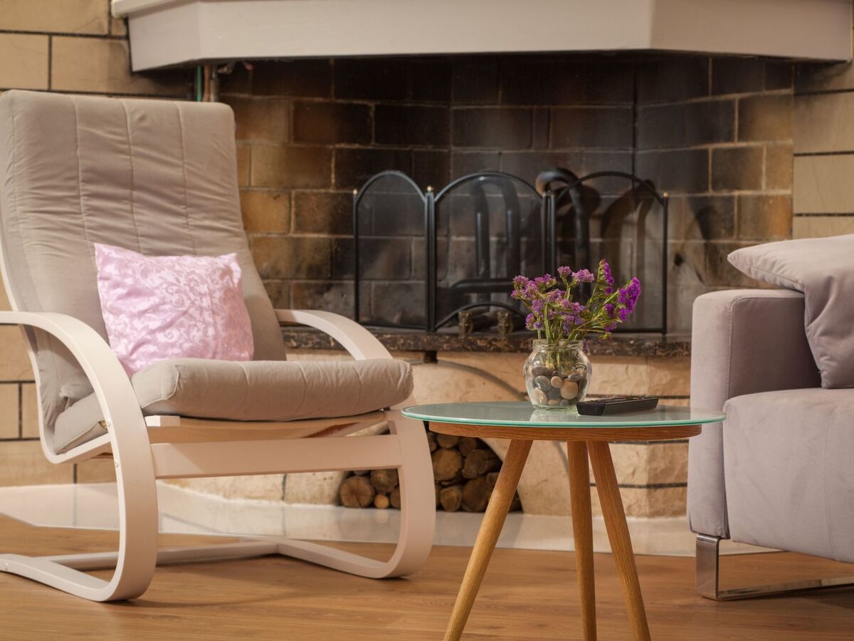 The kitchen impresses with its charming retro style and is fully equipped, while the living room invites you to relax with a sofa bed, a generous TV and an inviting fireplace.