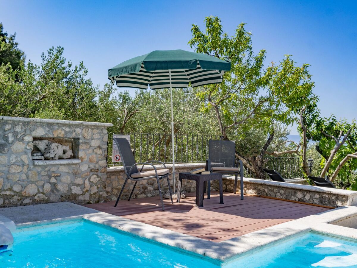 The villa with pool has its own parking space in the hamlet of Prodani and is accessible for pedestrians via a 150 metre long, illuminated concrete path.
