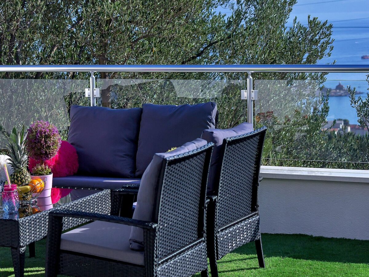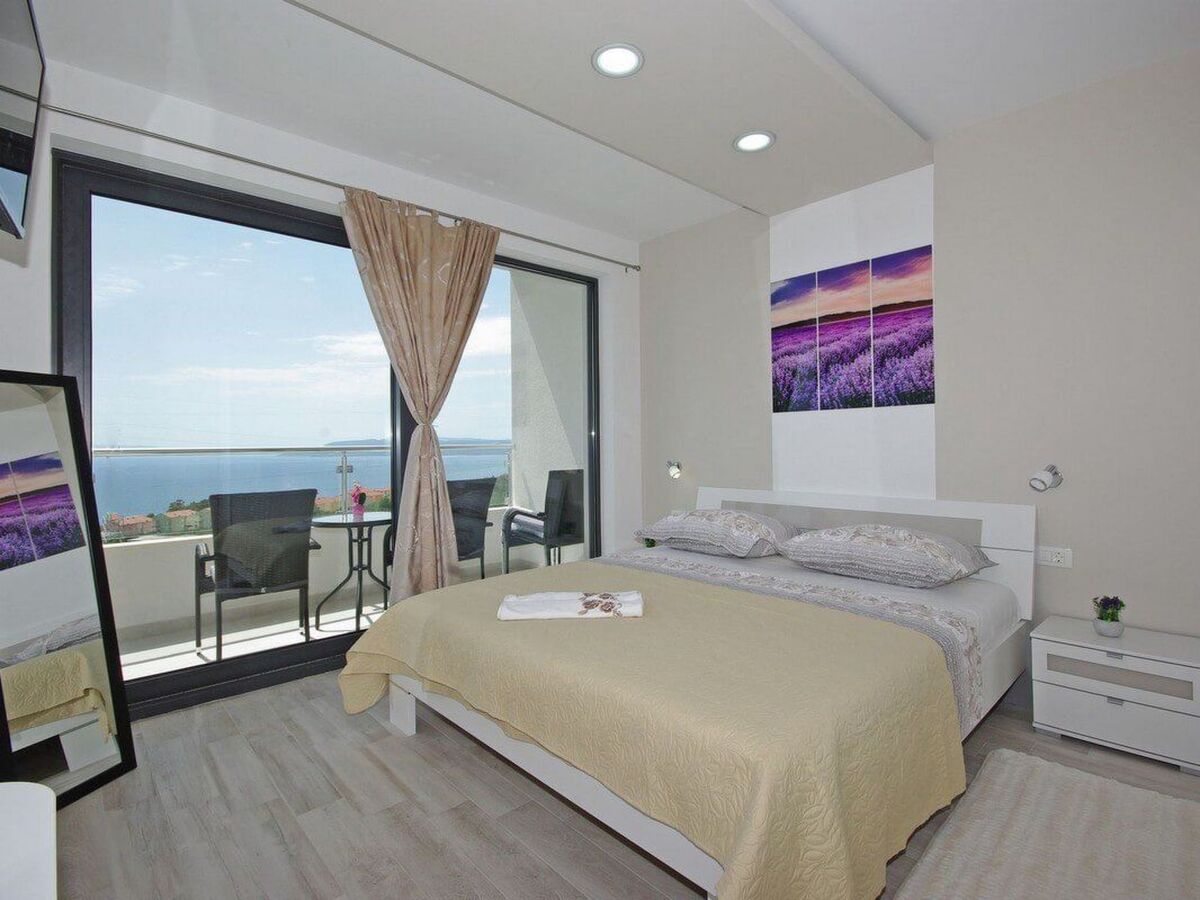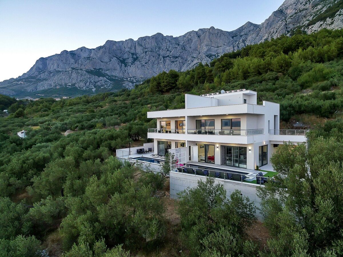 is situated in a quiet hillside location above the town of Makarska surrounded by many olive trees, ideal for a relaxing holiday