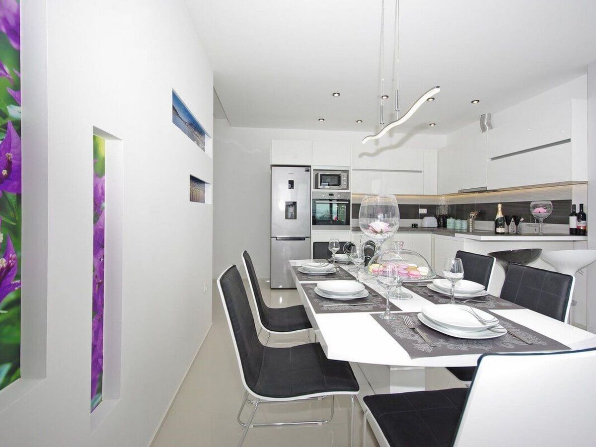 Past the dining table, which offers plenty of space for dining together, you reach the open-plan kitchen area.
