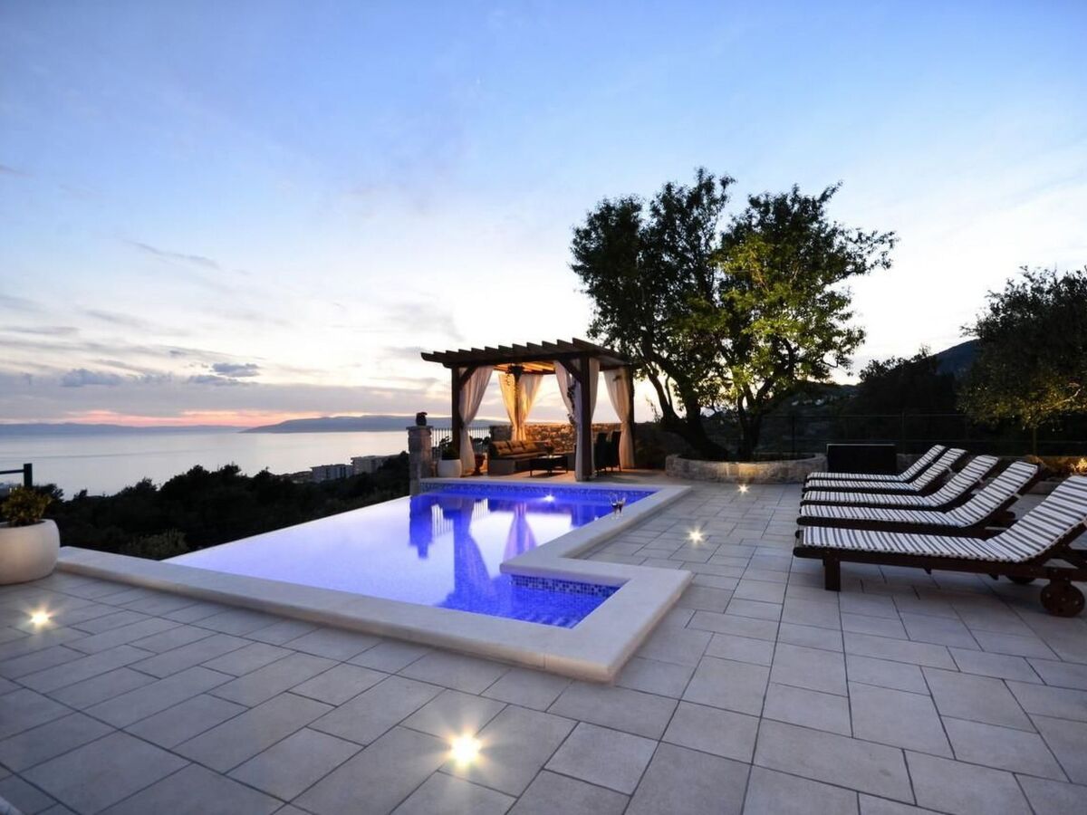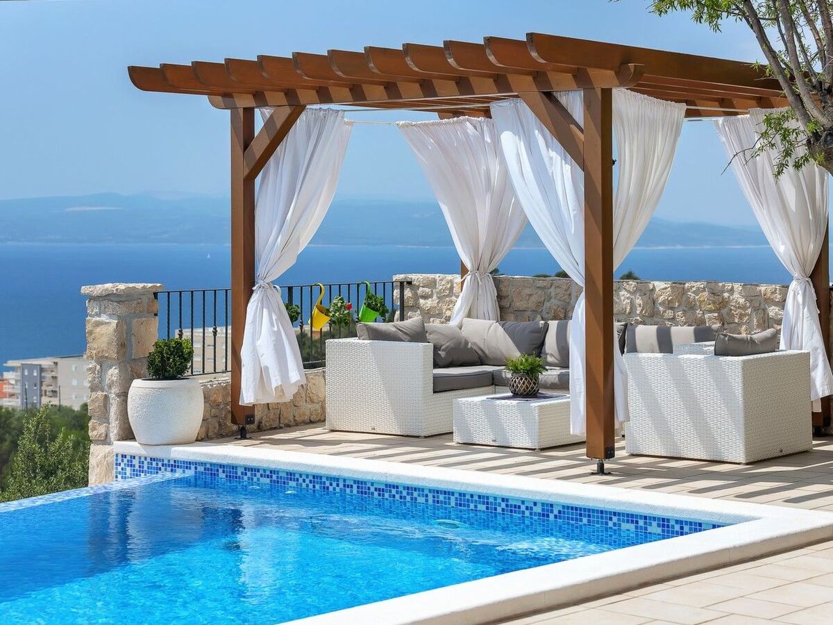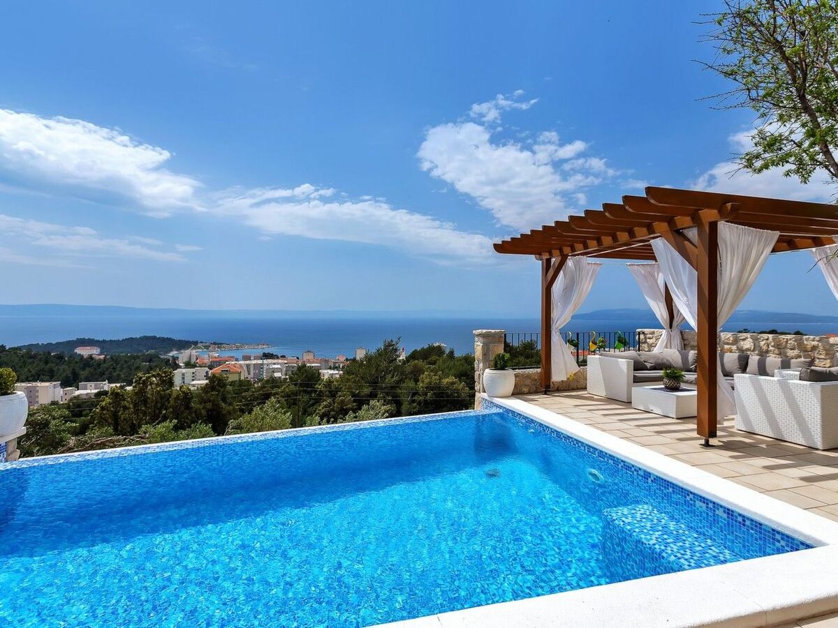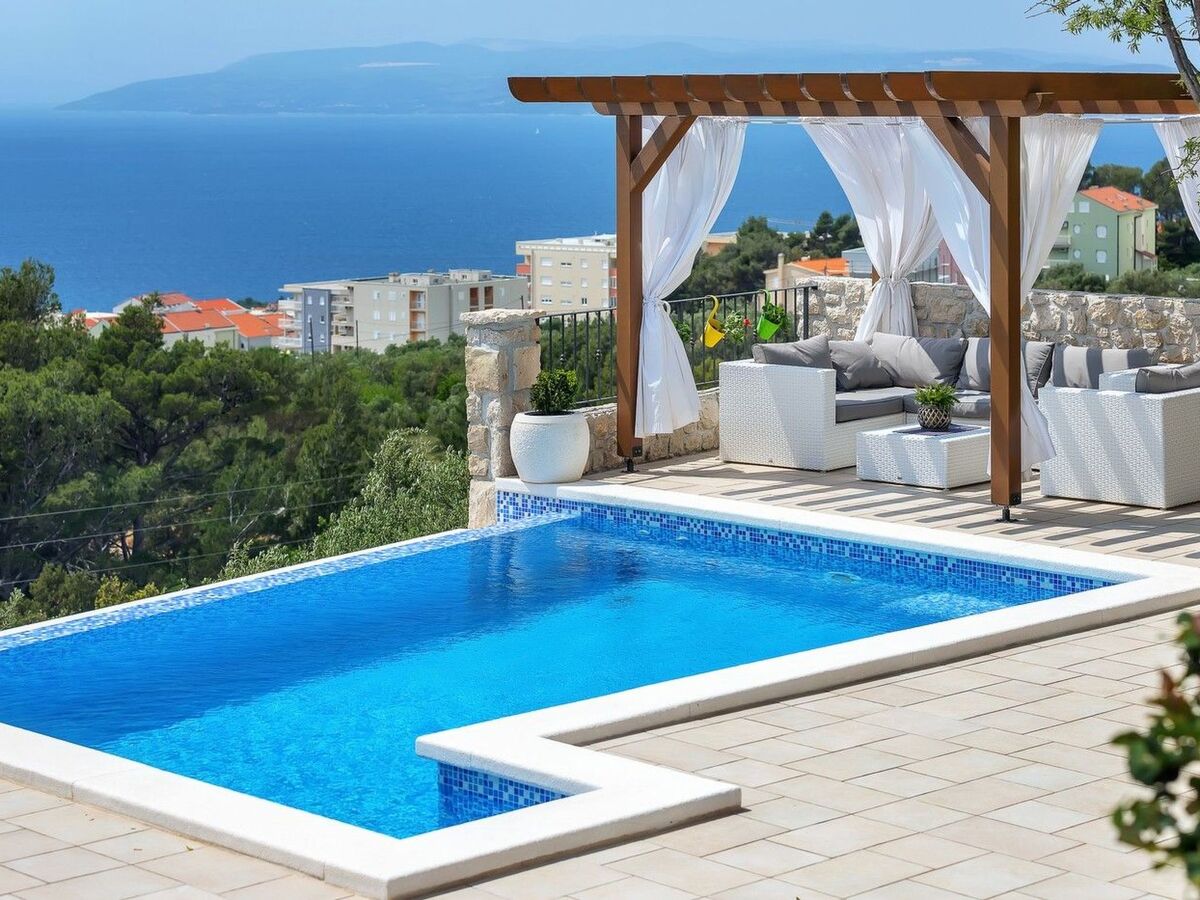 The overflow pool (heated) is about 25 square metres in size and from here you can enjoy the beautiful view of the sea and the town of Makarska.