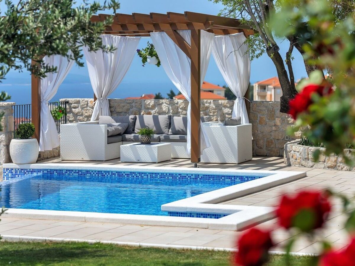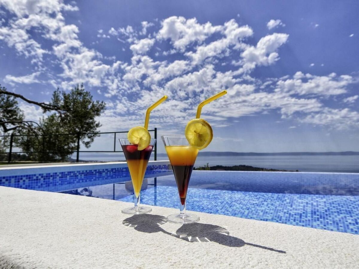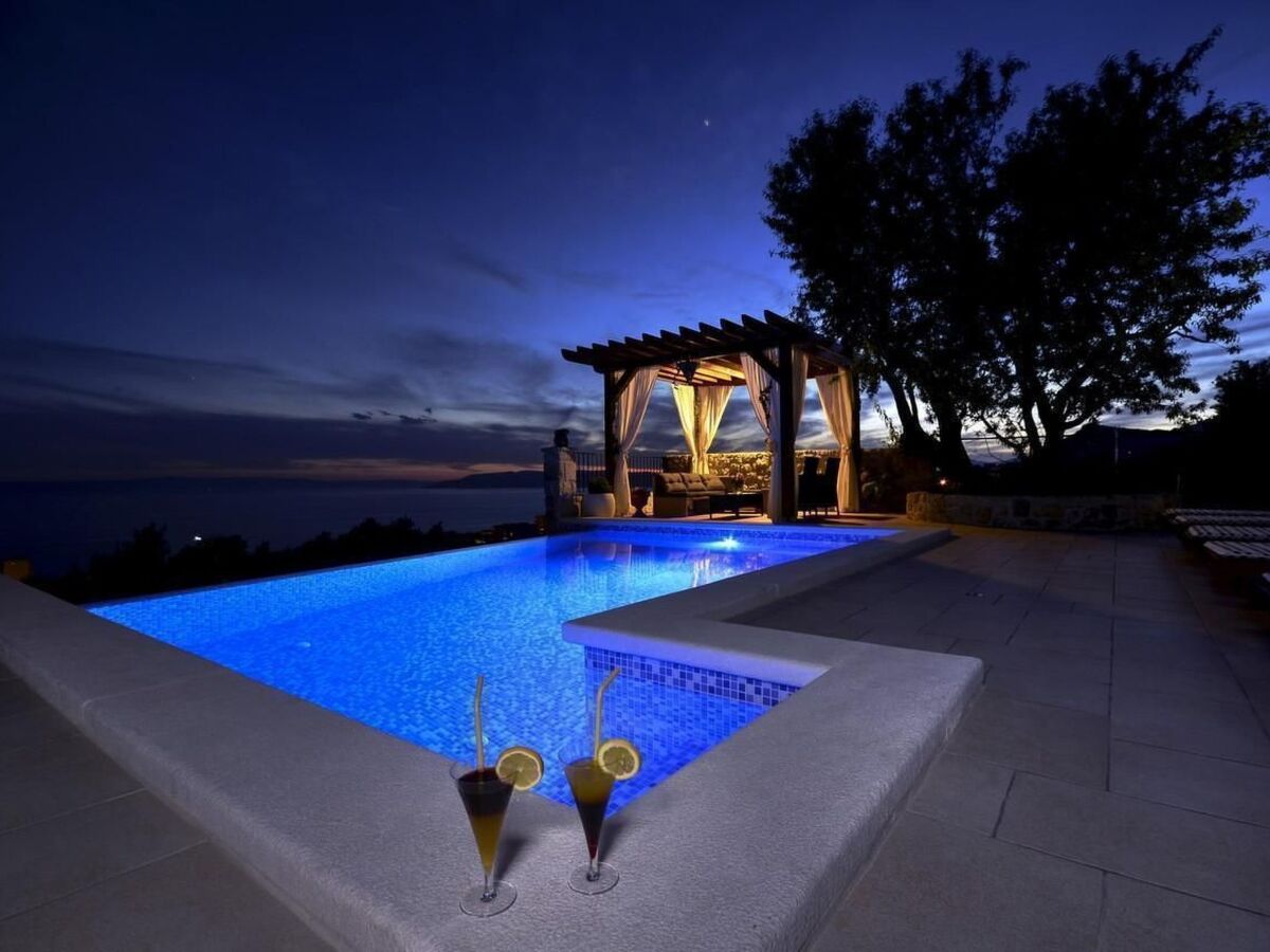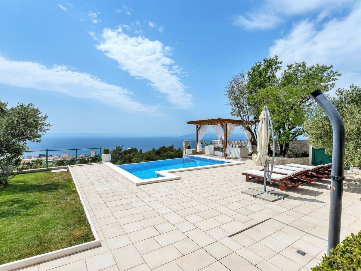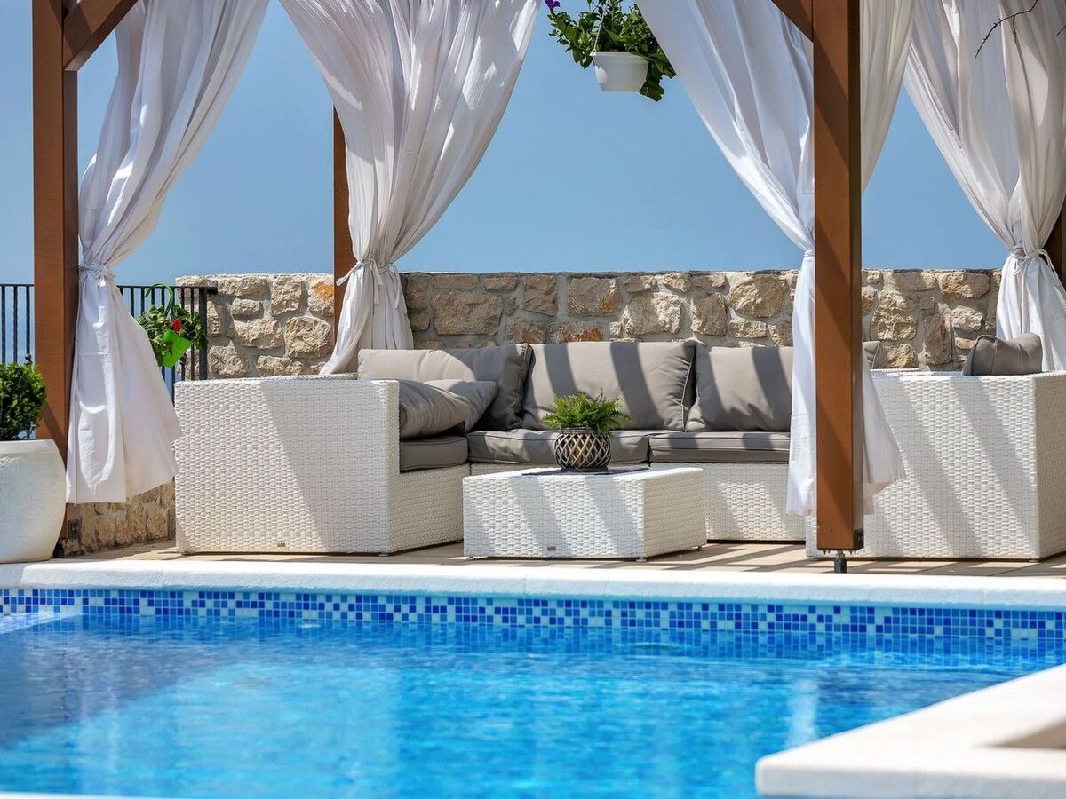 The overflow pool (heated) is about 25 square metres in size and from here you can enjoy the beautiful view of the sea and the town of Makarska.