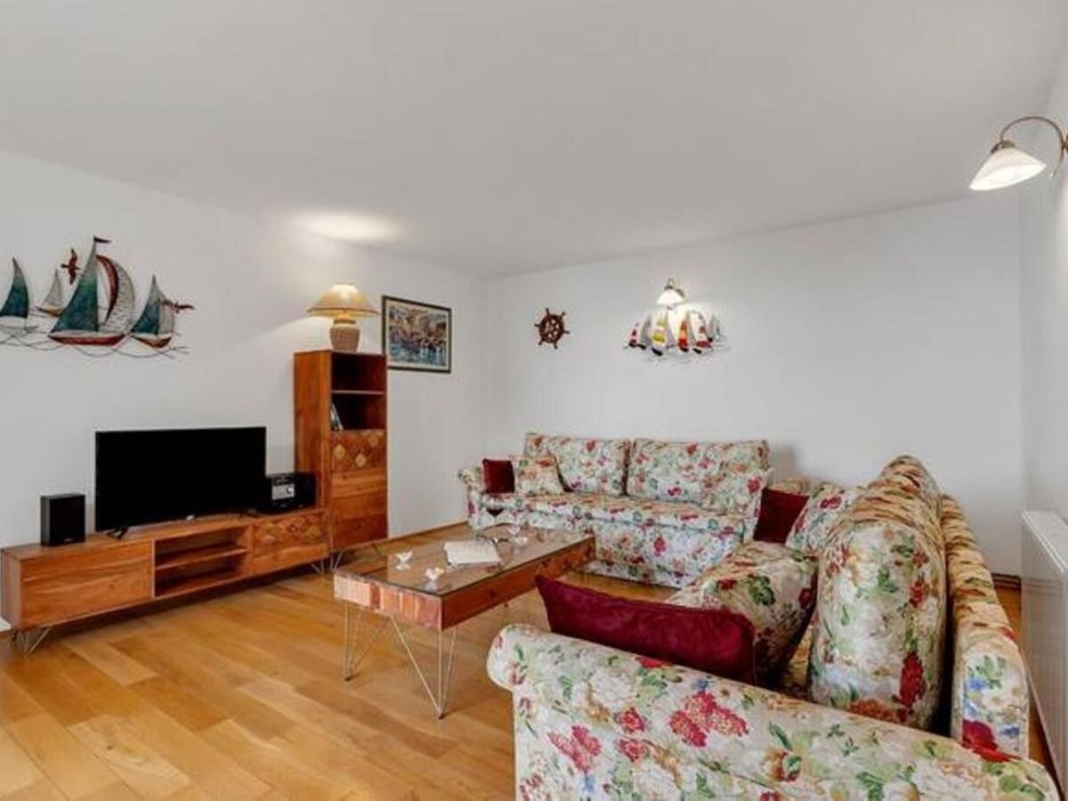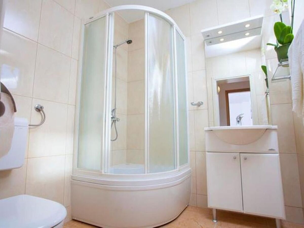 On the first floor there are two double bedrooms, each with private bathroom with shower, living room with seating elements (the sofa can be used as a extra bed for 2 children).