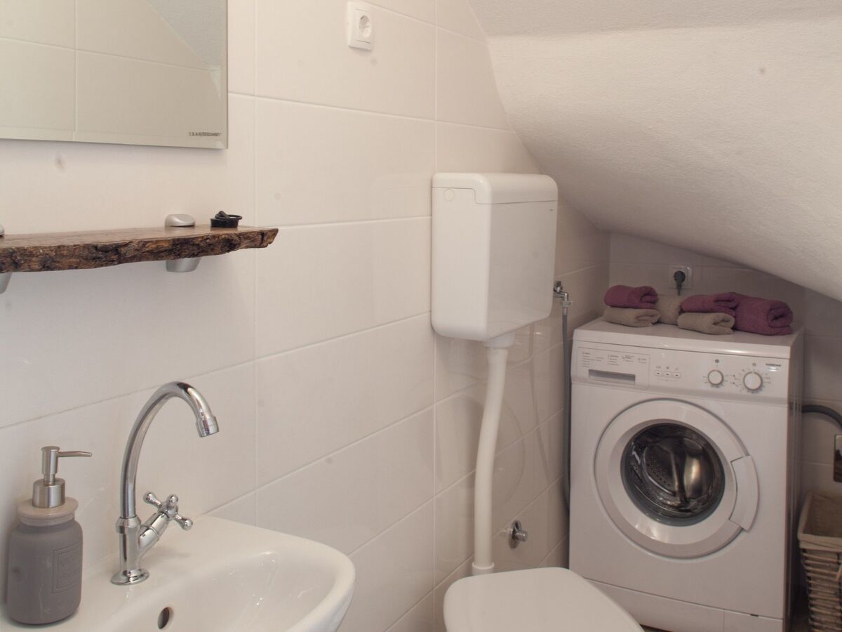 On the ground floor is the kitchen with dining room and fireplace, a guest WC.