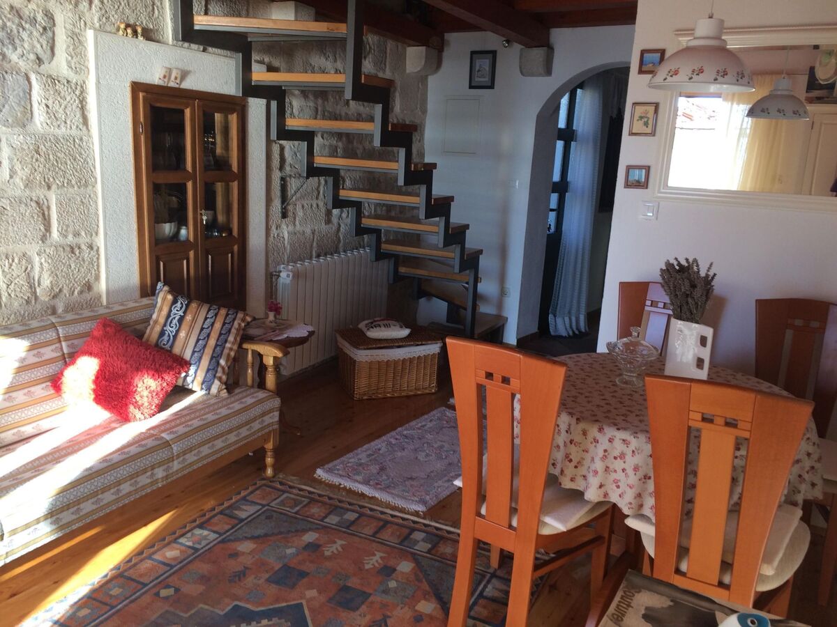 Quiet setting old village Terrace with garden furniture and sunshade ,barbeque,beautifulview on the sea islands and mountain Biokovo1763m Romantic small,old stone house,completly renovated in traditional dalmatian style to suite all you needs during your holiday stay.It is so nice ,sure steal your heart and soul.It is lokated in old village of Podgora,4 km from sea-beach and town of Podgora with all amenities-grocery stores,fish and fresh local product market,restaurants,bars,entertainment,pharmacy,watersport centers,taxi,bus etc.Podgora will welcome you with its 4 km long strech of white pebble beaches. The house offers you truly relaxing holiday.It is nested in a cluster of old stone houses,sorrounded by olive trees,gardens,pine forests and vineyards. House features sleeps 1 bedroom,one bathroom, fullyequiped kitchen,BBQ-wood avilable,TV,patio and terrace.The room and living room are spacious,stone walledequiped with high quality wood furniture for your comfort.This property can acomodate 3 people (2+1). Peacefull,quiet and cozzy,with a stunning viewon nearby islands,sea and marvelous sunsets to remember. Plenty of bike and hiking trails and acces to Biokovo mountin Suppermarket 7 km,sea-beach 4km,Town-center 4 km, Excursion Split 65 km,Dubrovnik,Mostar,island Brac ,Hvar,Korcula-Marko polo's birth place,Plitvice lakes National Park etc. It is out of road Basic information - Pets allowed: none - type of building: semi-detached - Total number of floors in the building above the ground floor: 2 - year of construction: 1706 - Year of the last complete renovation : 2010 - Number of bedrooms: 1 - Number of bathrooms: 2 Top features - air conditioning: In part - heating: Everywhere - balcony - terrace - Total of private car parking spaces: None - ㄴ of which garage spaces: None - ㄴ of which carport spaces: None - ㄴ of which private outdoor parking spaces: None - distance to public multi-storey car park: 40 m Sleeping bedroom 2 - 2x single bed in the living area - sofa bed for 1 person Bathroom bathroom 2 - shower bathroom 4 - shower - toilet - hair dryer Cooking/Living - coffee machine: filter coffee machine - fridge/freezer: deep freezer, fridge - stove: gas hob - oven - electric kettle - dishwasher - number of dining tables: no - number of seats: no Entertainment - TV: TV - radio Utility - washing machine: For sole use in the object - Clothes dryer: For sole use in the object - iron - vaccum cleaner - fan: 1 Outside area - grill/barbecue: grill/barbecue Surroundings - view: sea/lake - Nearest town centre: 8,0 km - Grocery store: 4,0 km - going out: 4,0 km - restaurant: 4,0 km - airport: 70,0 km - motorway: 18,0 km - port: 4,0 km - distance public transport: 4,0 km - beach: 4,0 km - sea: 4,0 km - river: 40,0 km - water sports: 4,0 km - boat hire - playground: 4,0 km - riding facility: 5,0 km - mountain rail: 5,0 km Distinctive features - country estate - located in the middle of the countryside
