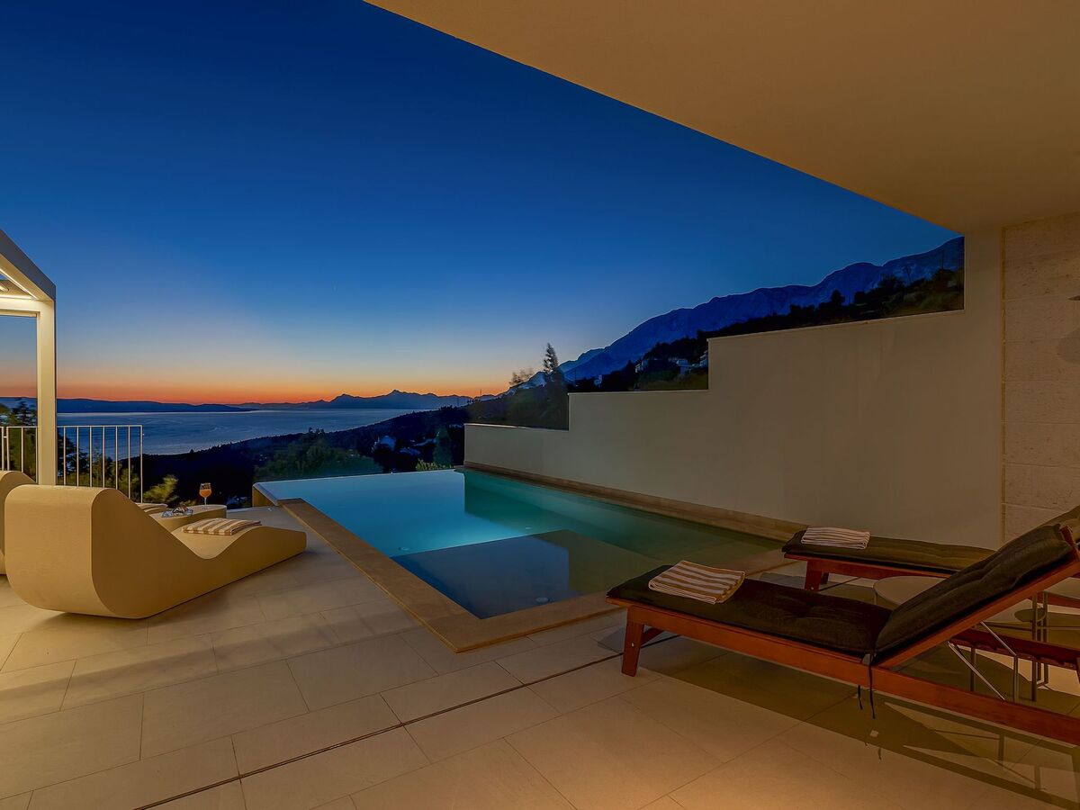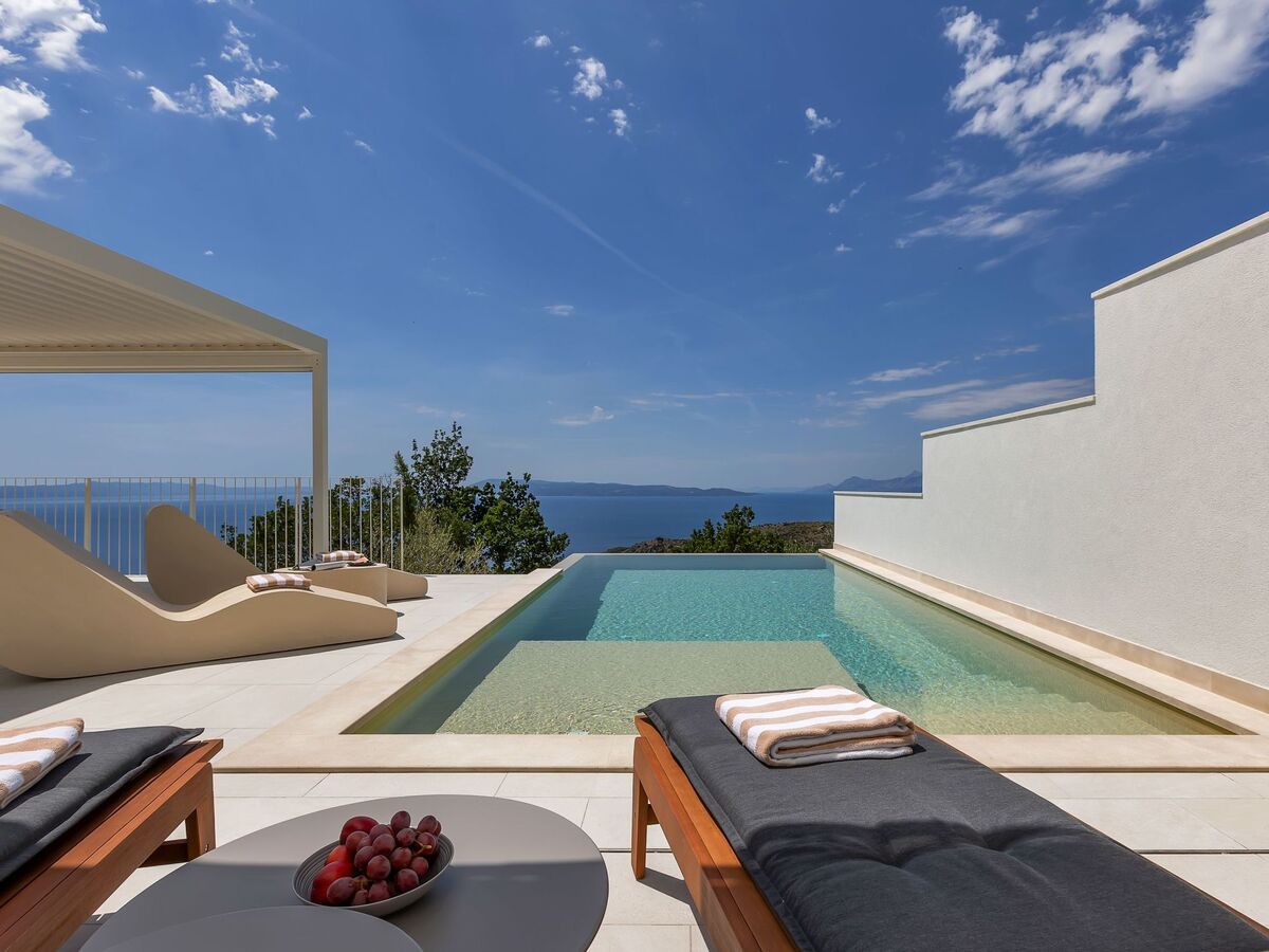 The outdoor area of the villa offers a private pool to cool off on sunny days.