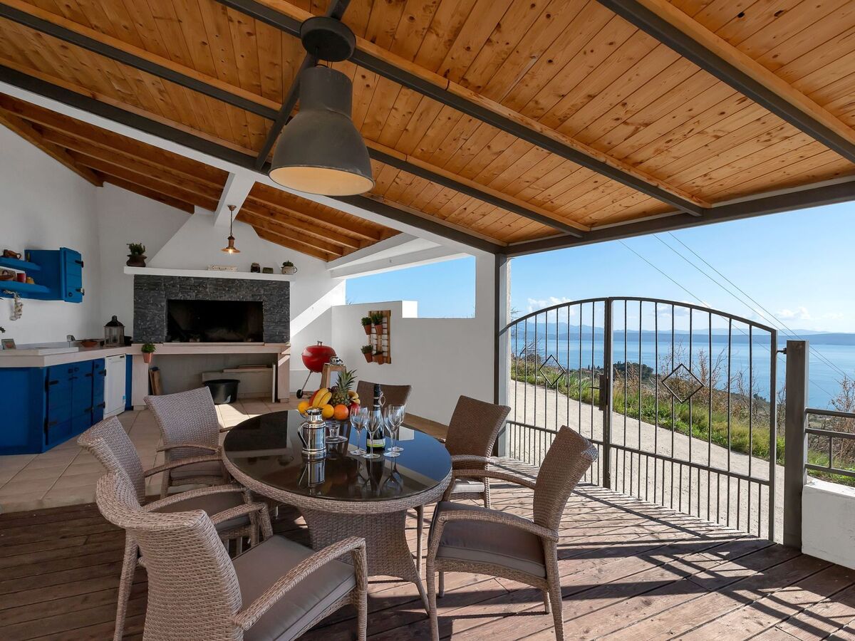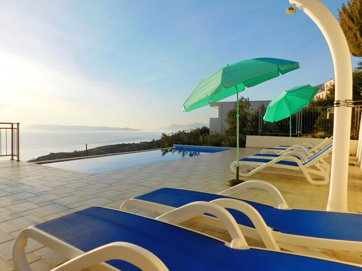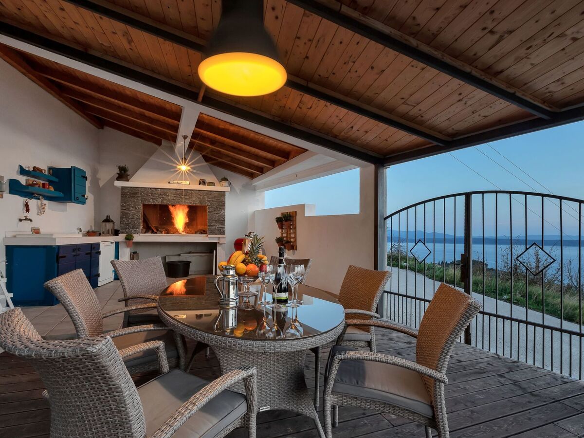 Outside there are a big terrace with a table and chairs for six people, a roofed summer kitchen with a gas grill and sink, and as a highlight the 30m² infinity pool.