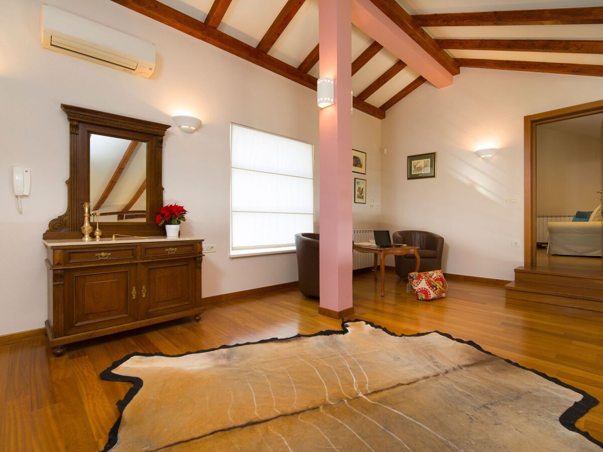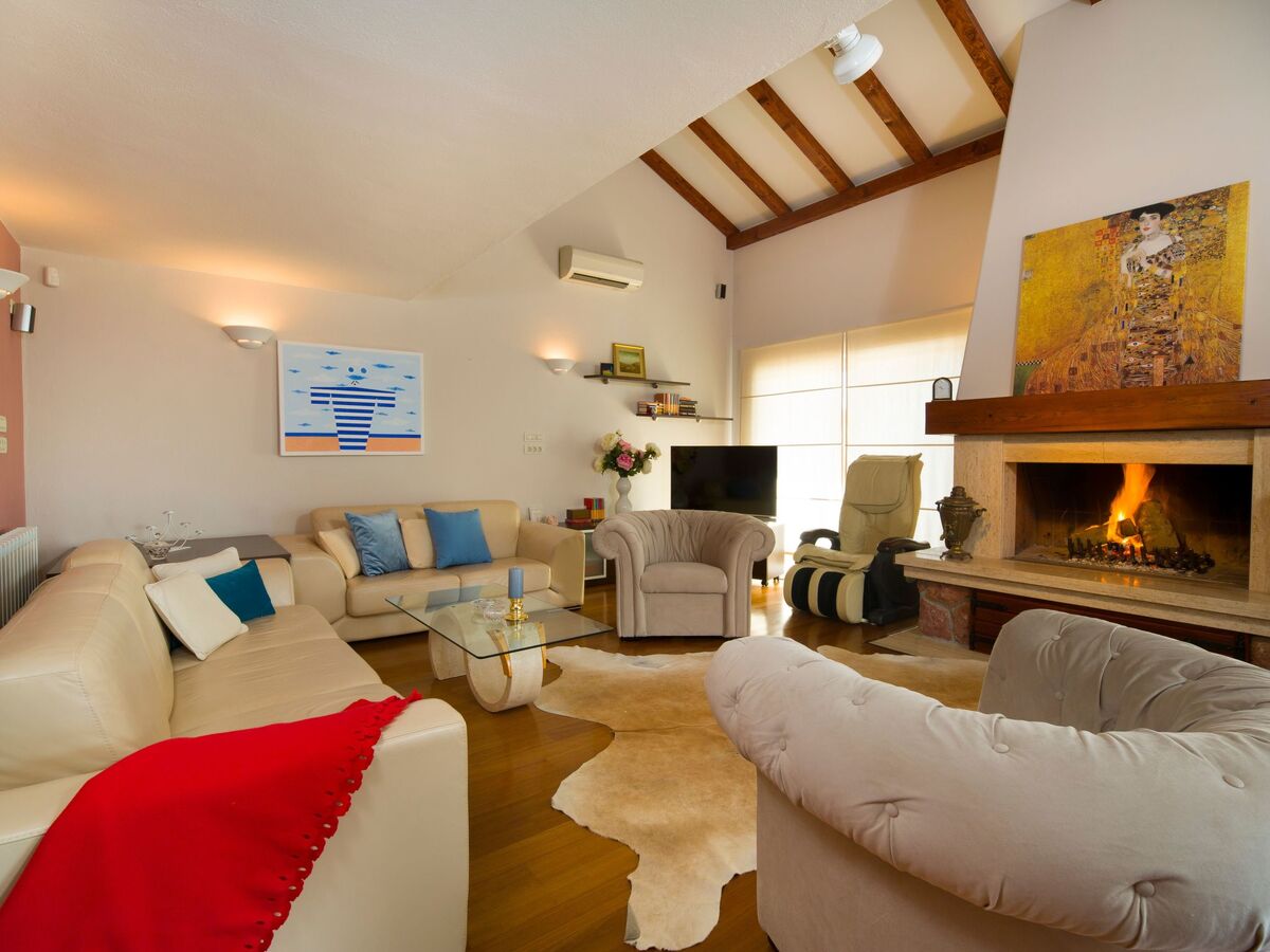 Layout: Ground floor 200m2: Fully equipped kitchen 19,4m2 (electric kettle, toaster, cooker (4 ring stoves, induction), coffee machine, oven, microwave, dishwasher, fridge-freezer, icemaker), - Dining room 20,4m2, dining table, heating, air conditioning - Living room 58,14m2 (2x single sofa with chairs, TV (flatscreen), dining table, fireplace, air conditioning, heating), - With open gallery above, the perfect place for chilling, reading the book or listening some music.