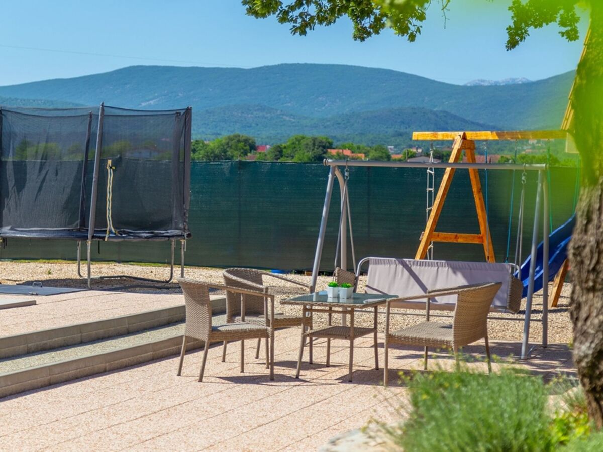 Outside is a spacious terrace, a barbecue area and dining area, a children's playground and an outdoor shower.