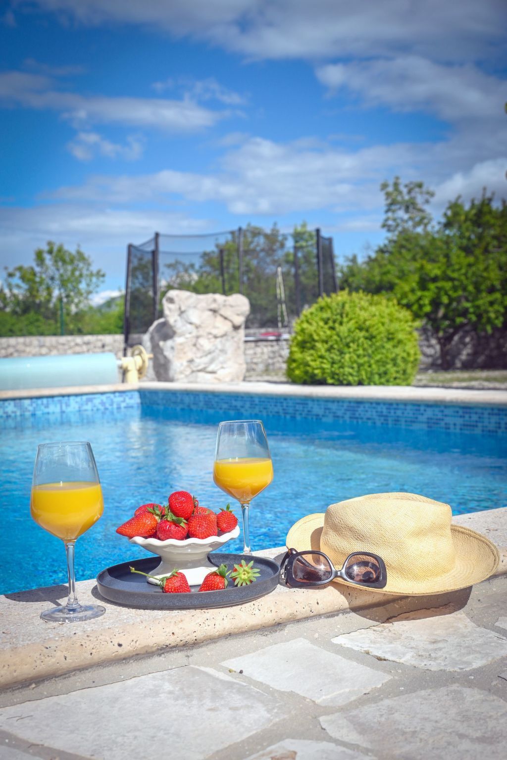 Absolute privacy ,peace,birds singing,good air, great swimming heated pool,barbecue place,boccia playground,free 4 bikes,trampoline,eco food from garden..