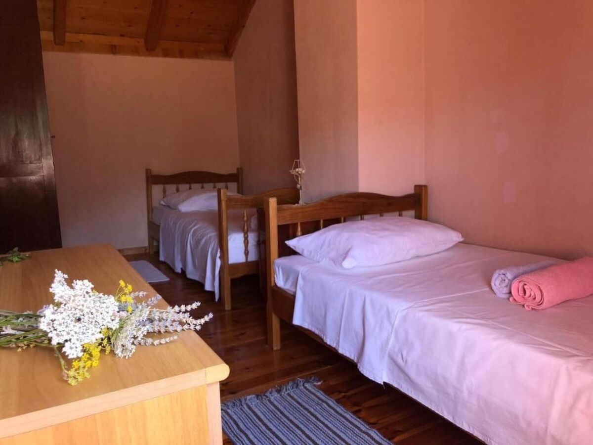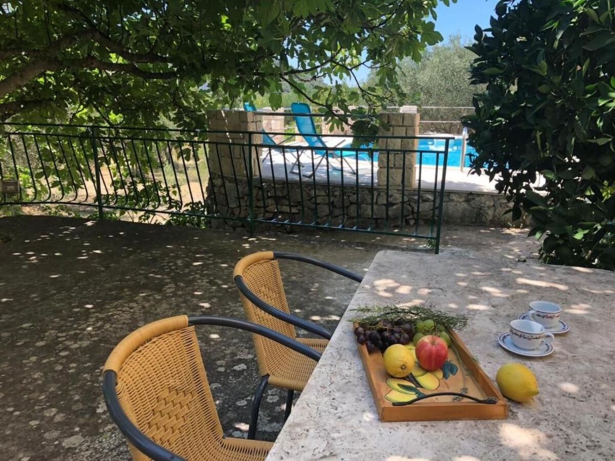 There is also a higher terrace with a stone table and benches from which there is a beautiful view of the surroundings and the pool.