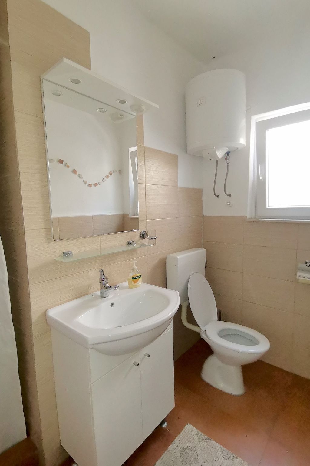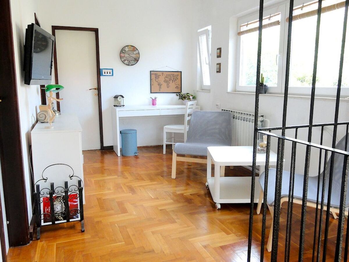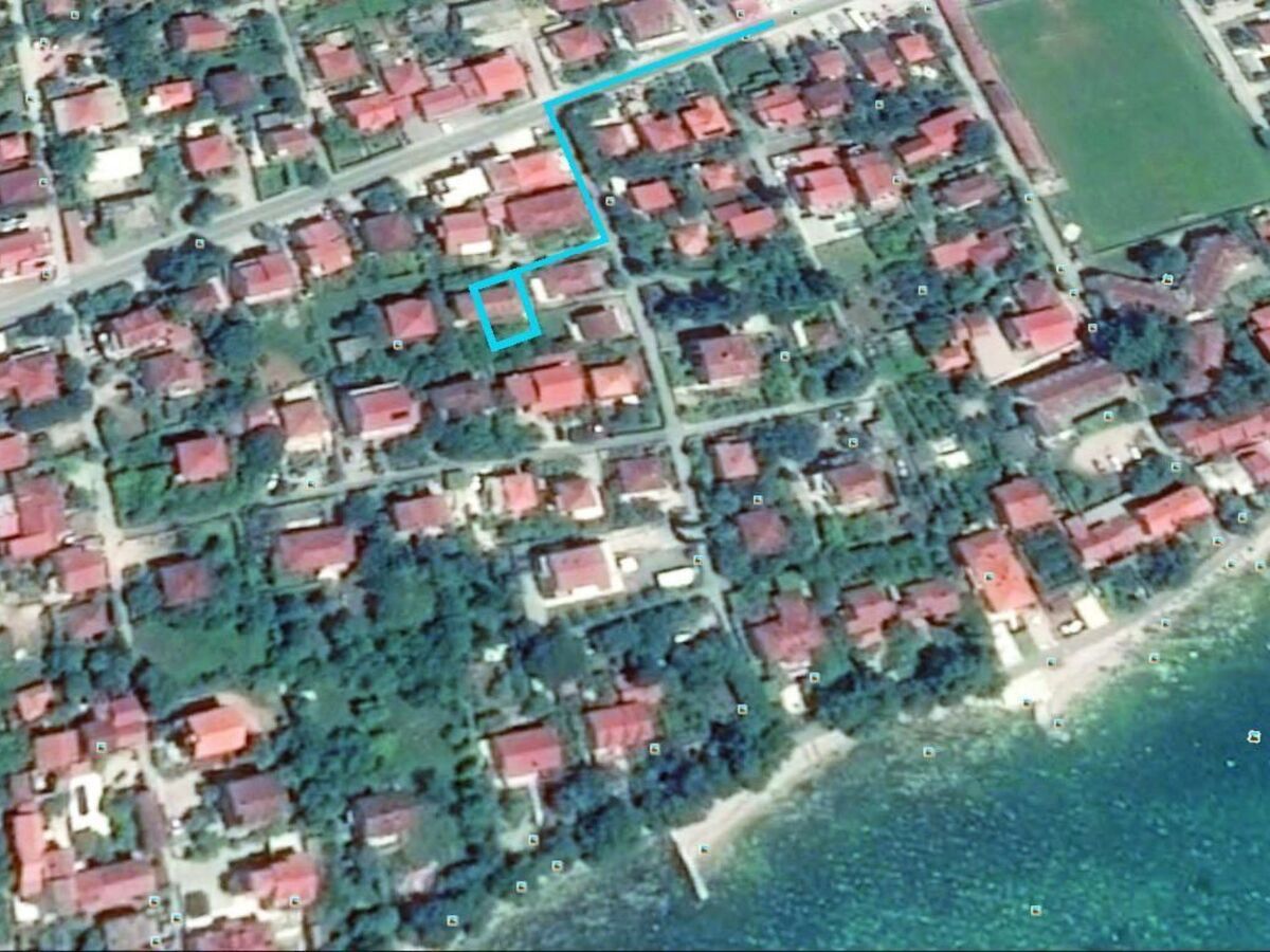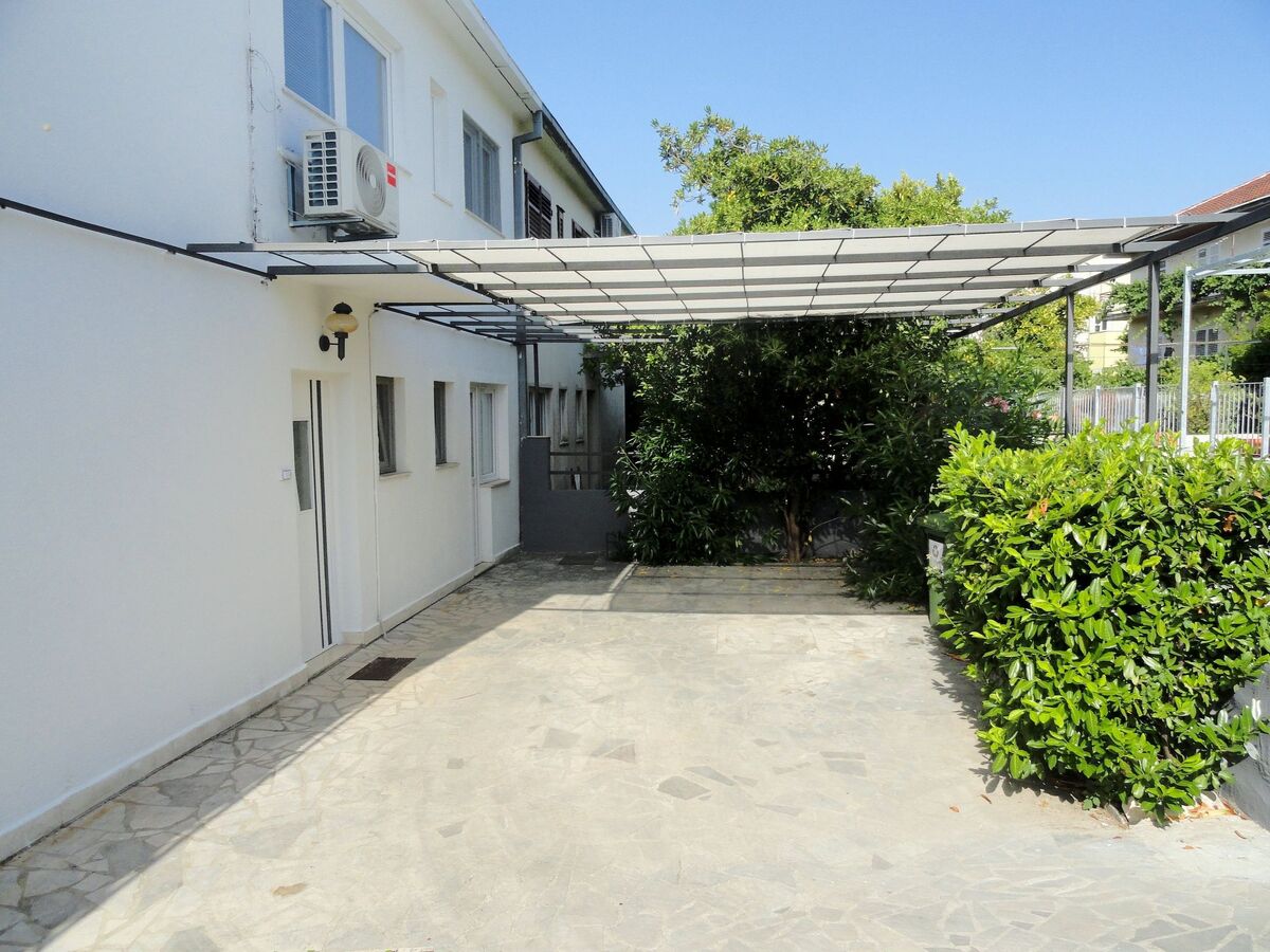 The holiday house is below the main road in a quiet area without car traffic, as the road towards the sea, about 100 metres away, ends with steps.