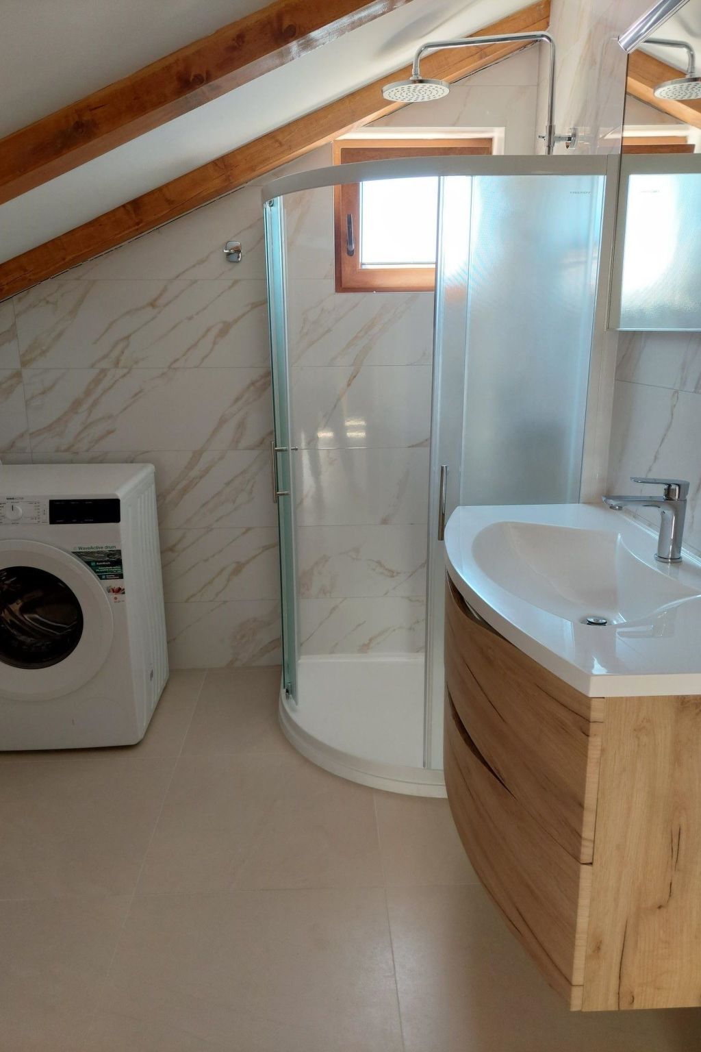 On the ground floor there is also a beautifully decorated living room with a fully equipped kitchen and dining room with 8 seats.