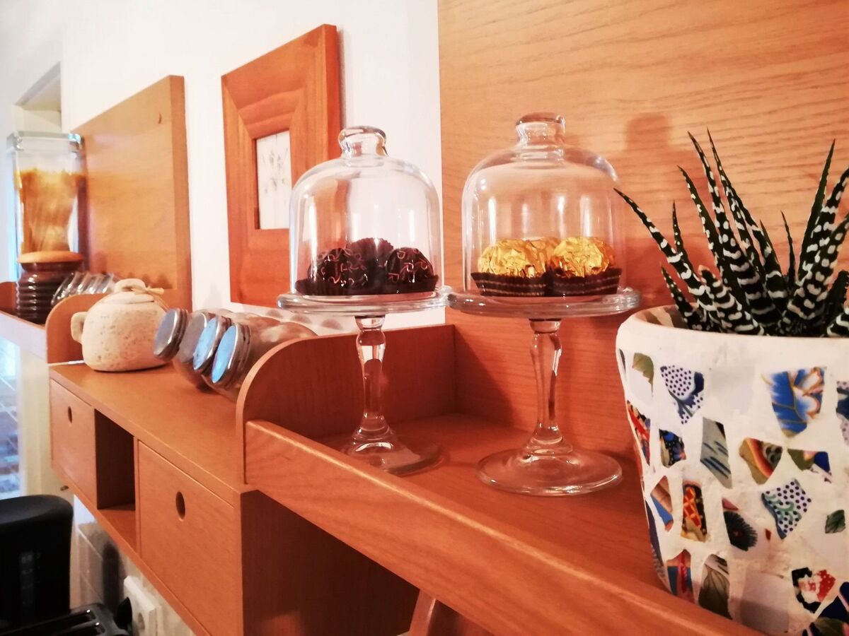 The kitchen is simply charming, well equipped with modern features, and quirky add-ons.
