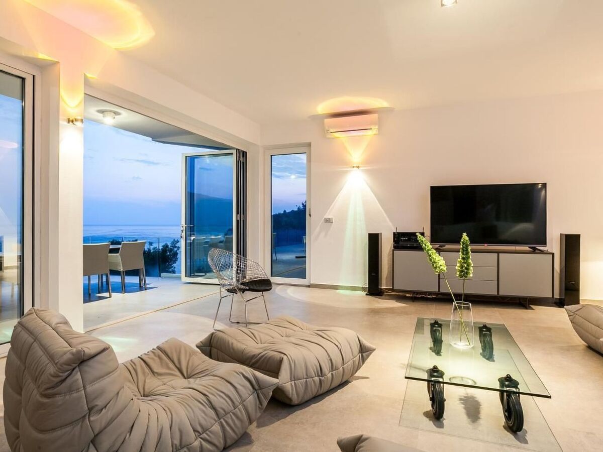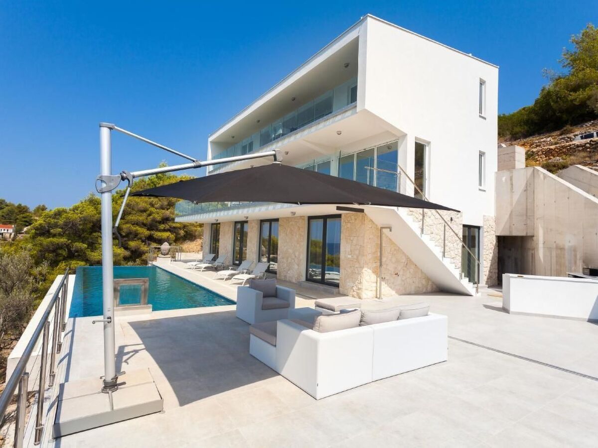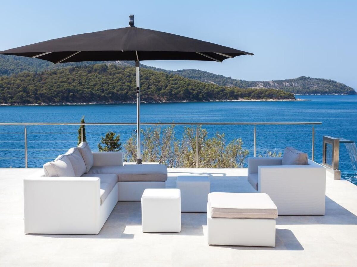 This newly built villa promises an unforgettable holiday with its spacious terraces, equipped with luxurious seating and sun loungers.
