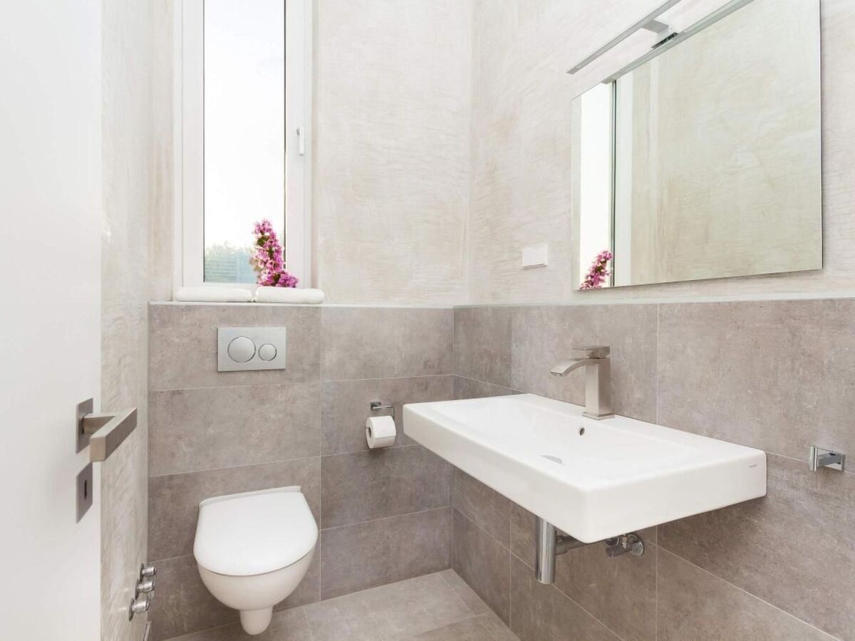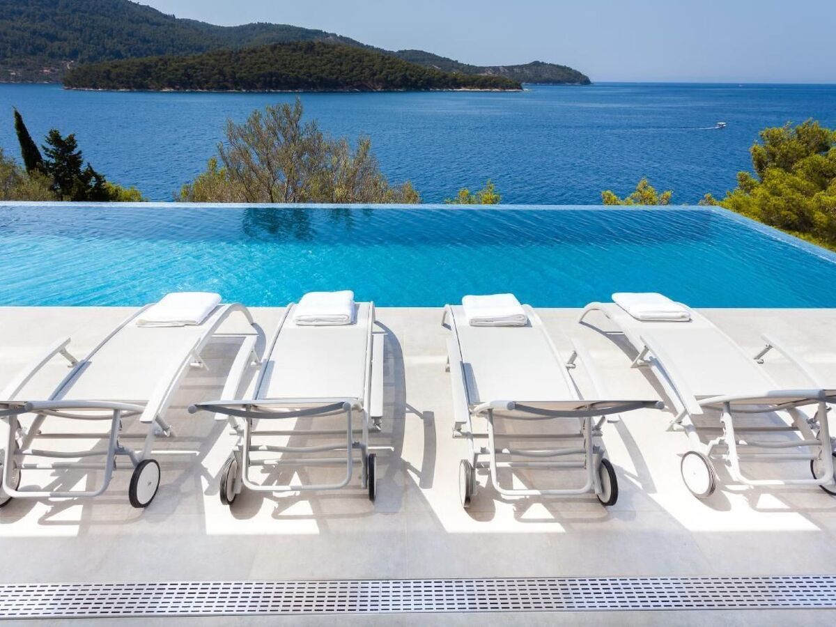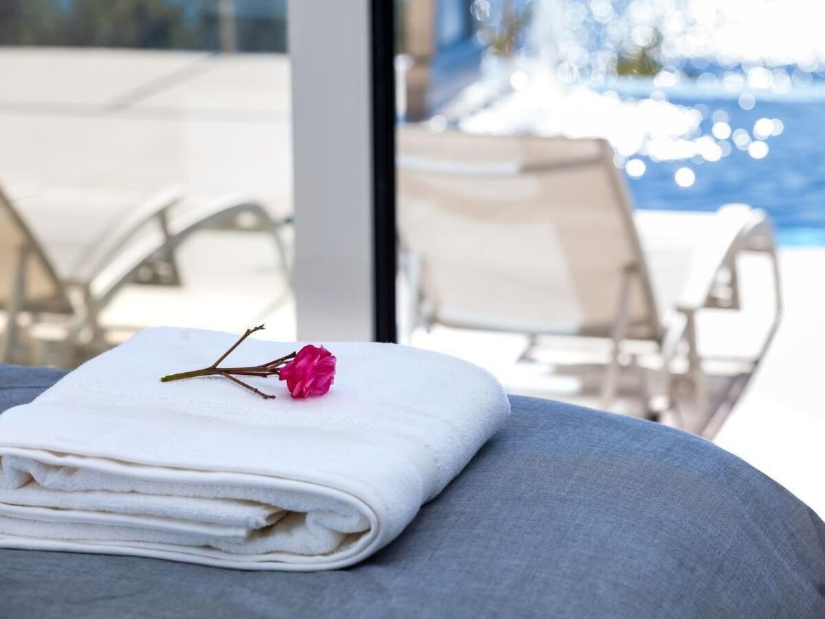 This newly built villa promises an unforgettable holiday with its spacious terraces, equipped with luxurious seating and sun loungers.