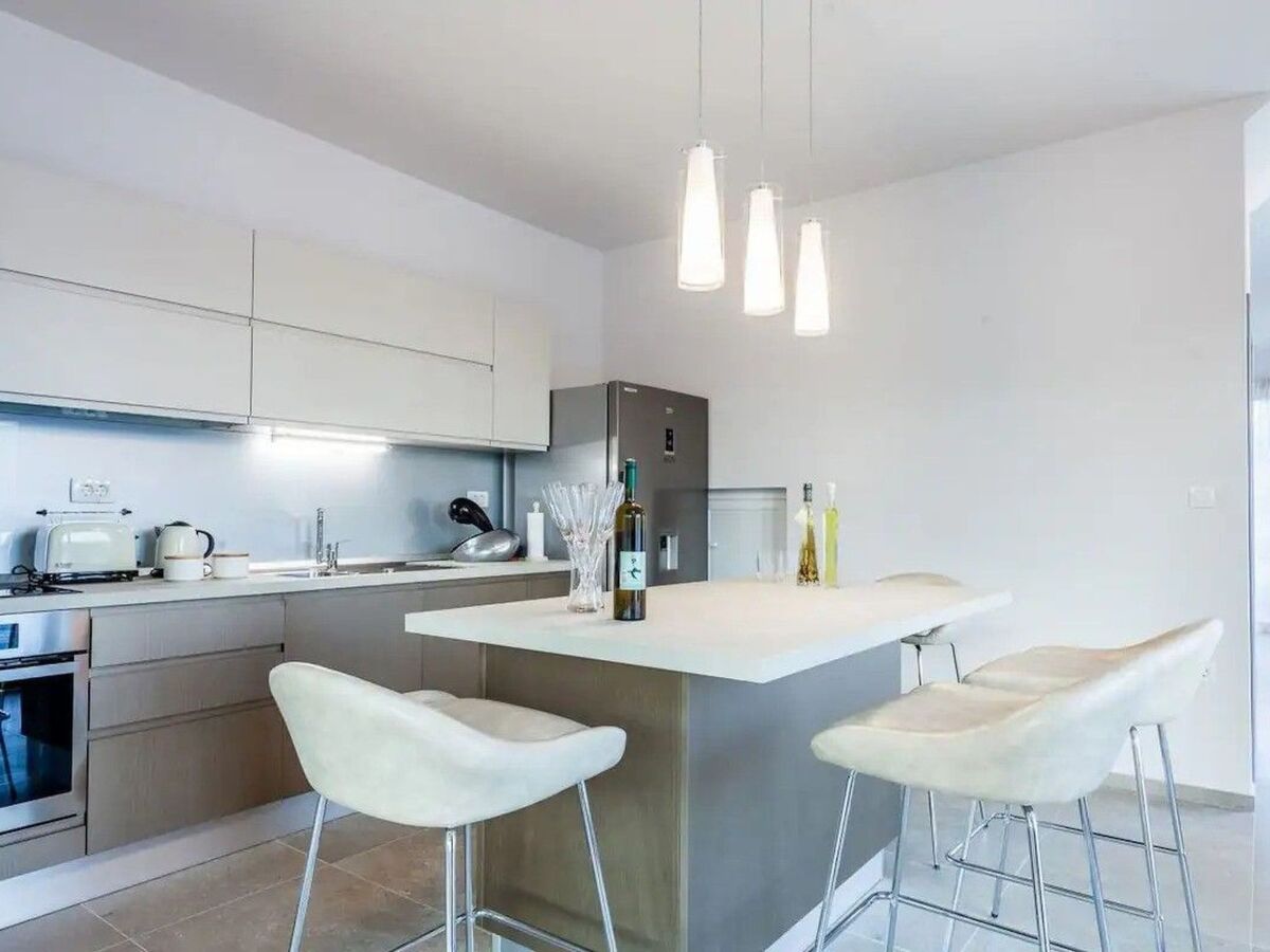 The house is surrounded by 2000 m2 of land planted with old olive trees, which extends to the sea and a private beach.