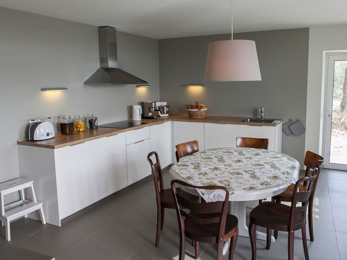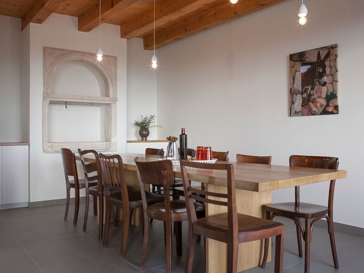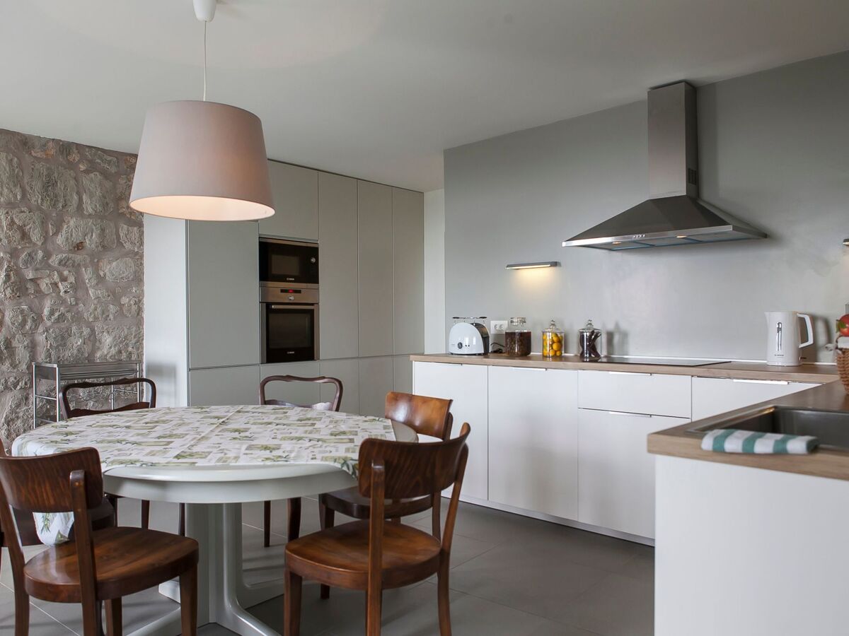 The light living room with its cosy sitting corner and big dining table invite you to enjoy sociable gatherings and to enjoy Mediterranean dishes prepared in the fully-equipped kitchen.
