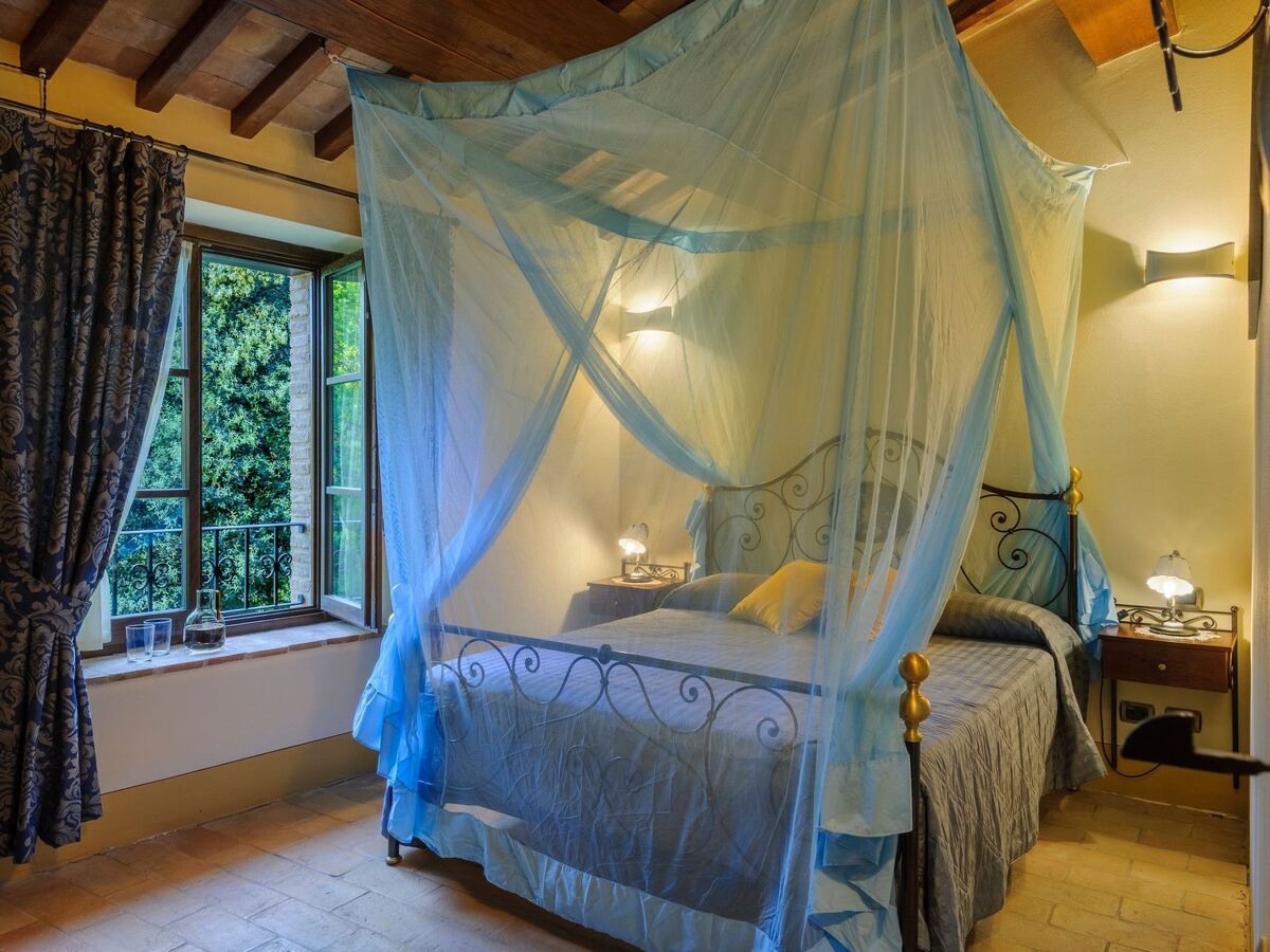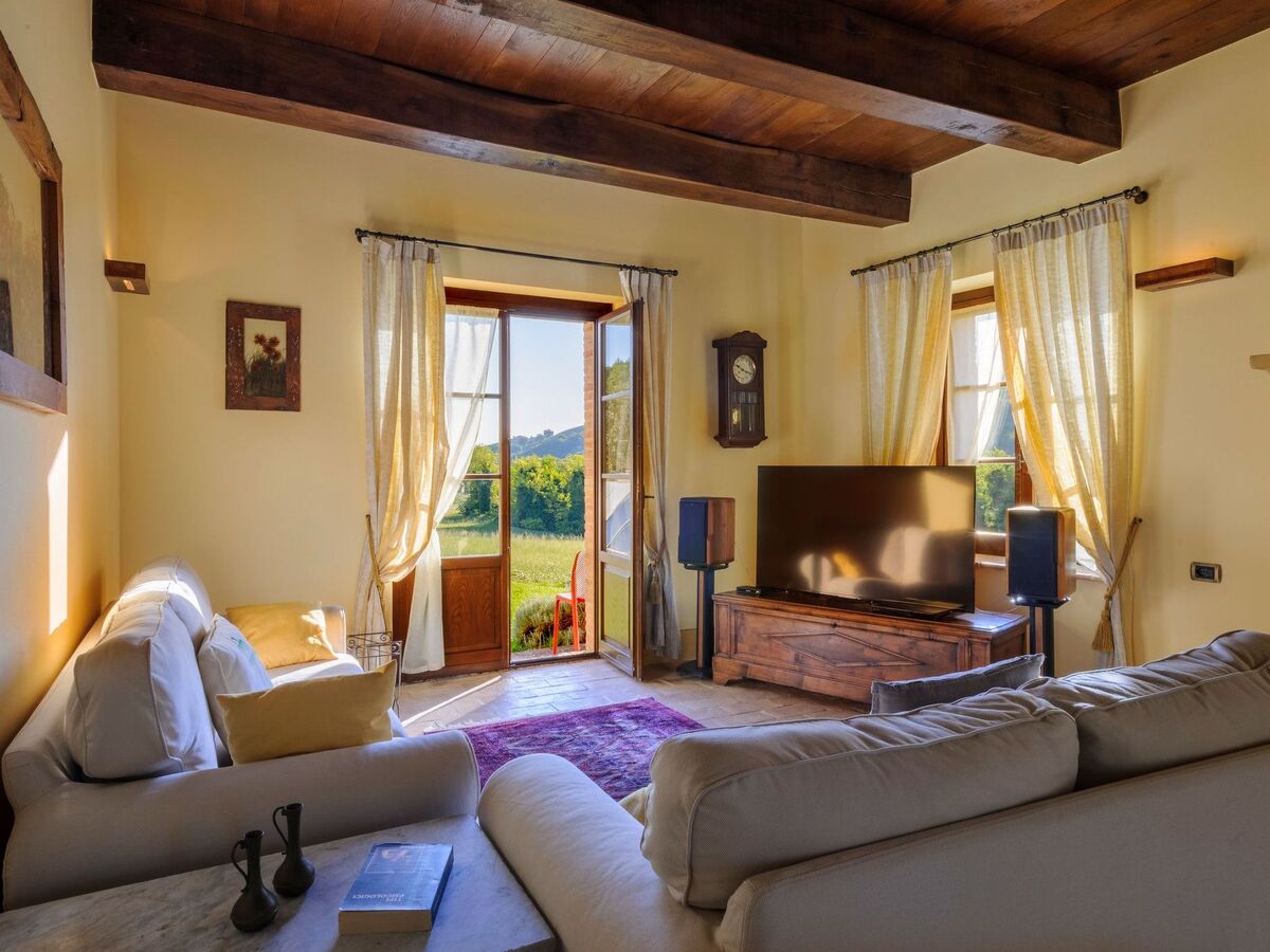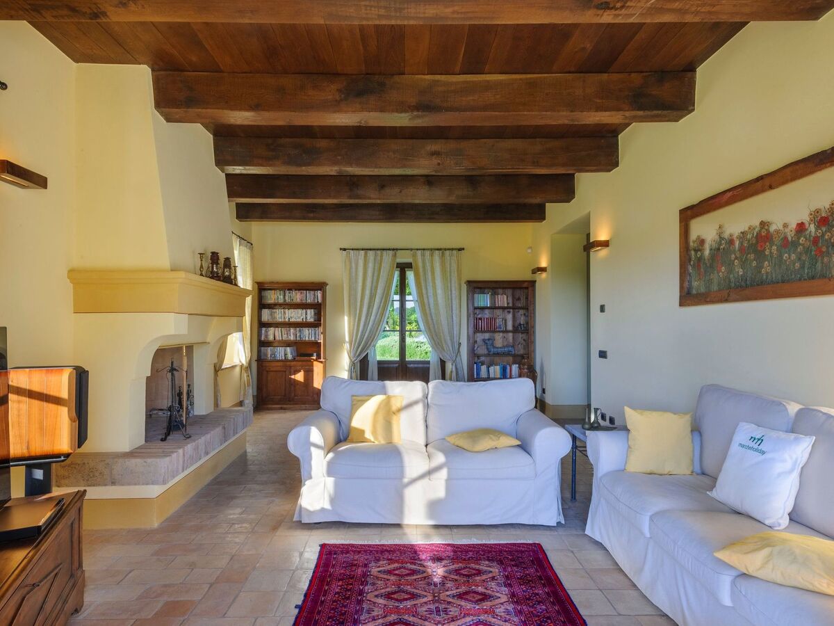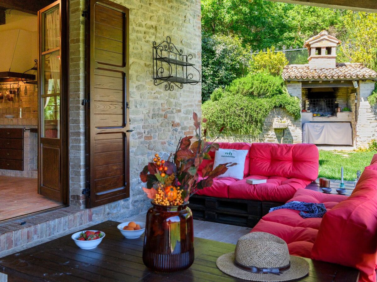 The cosy interiors, with exposed wooden beams, stone fireplaces and handcrafted furnishings, evoke the warm atmosphere of country homes, offering guests an authentic stay in the heart of the Marche region.
