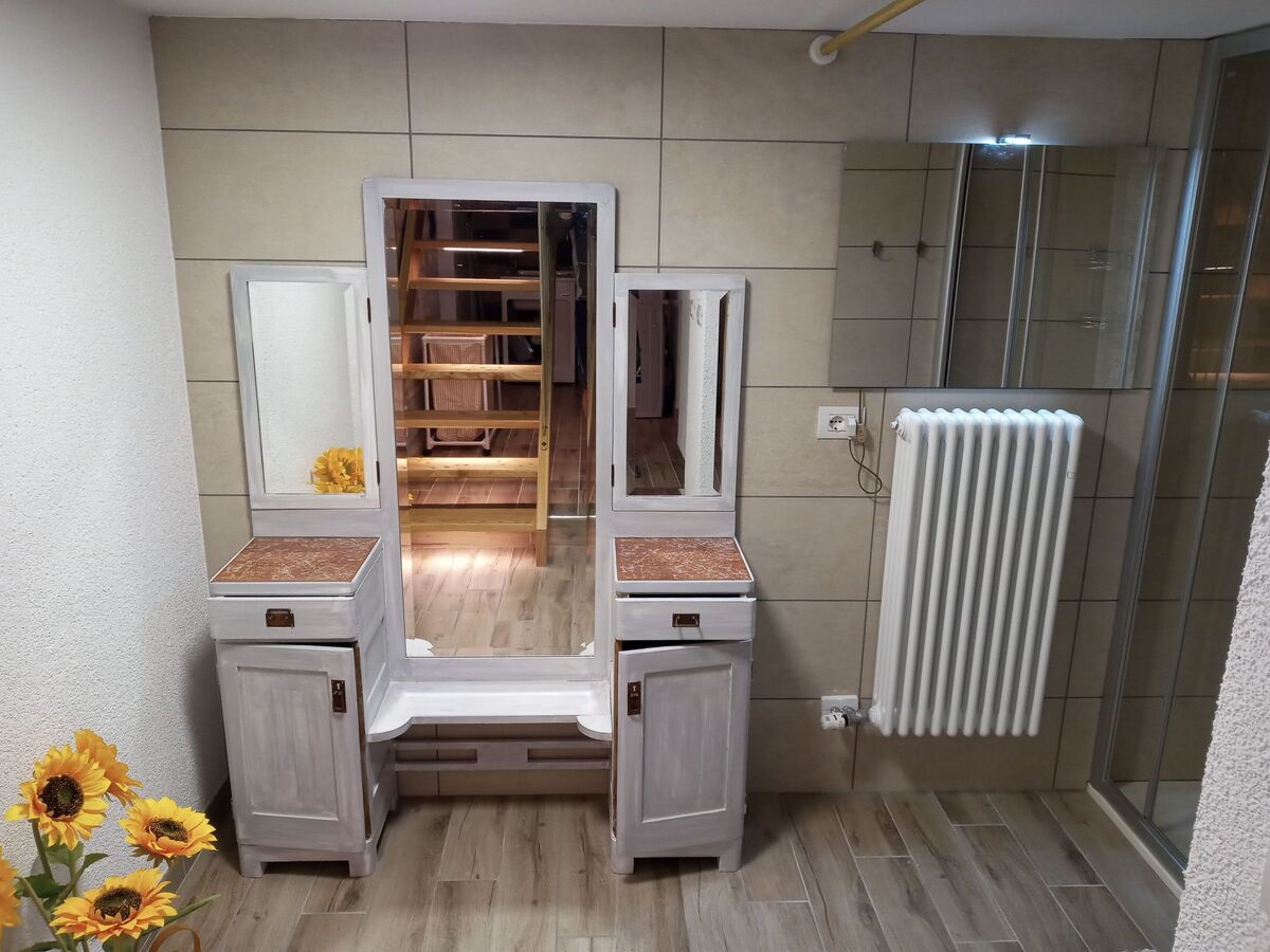 On the ground floor, you will find a main bathroom equipped with a shower cubicle, children's bathtub and toilet, next to a convenient laundry area with washing machine and a bedroom with two single beds.