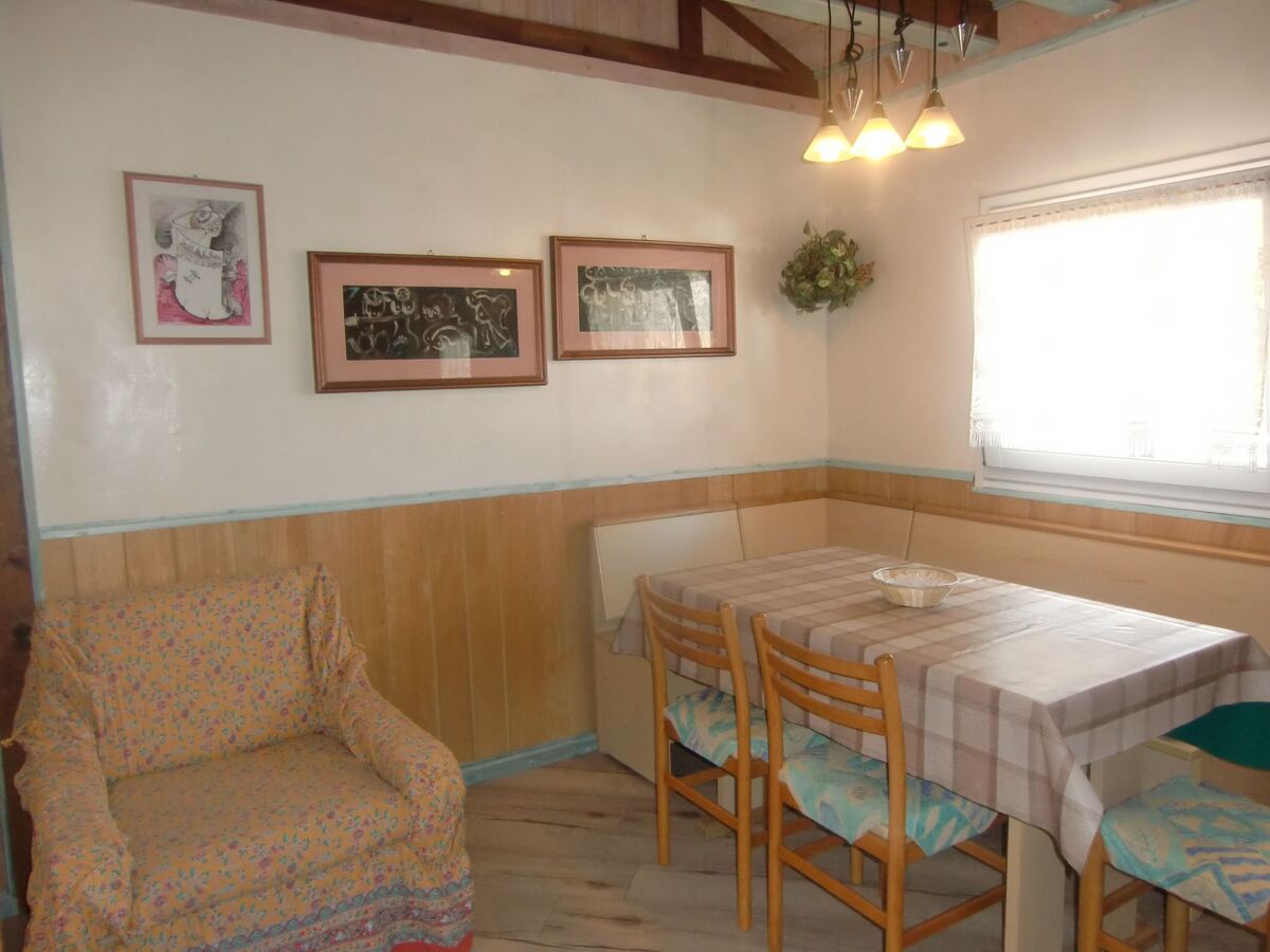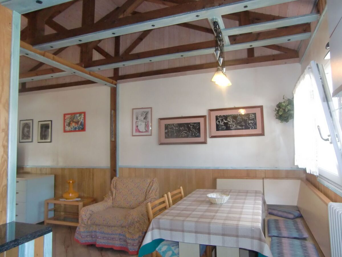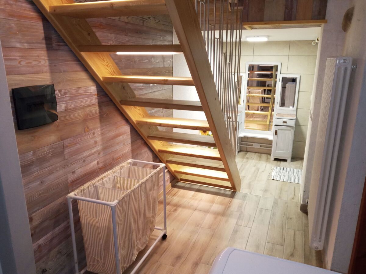The internal wooden staircase leads to the first floor, where you will find a cosy room composed of a fully equipped kitchen, a living room with stube, armchairs, satellite TV, a further bathroom with toilet, a double bedroom and a twin-bedded room, completing the accommodation with everything you need for a comfortable and relaxing stay.