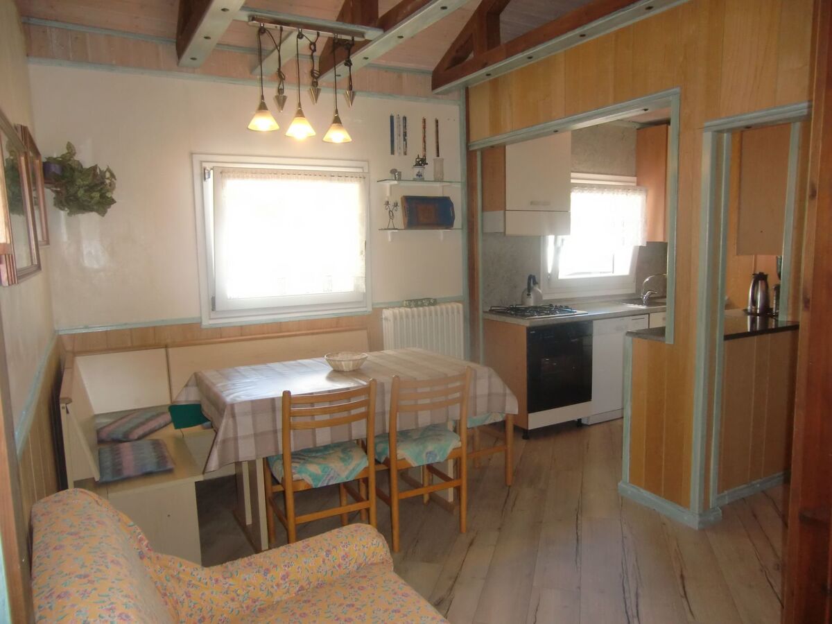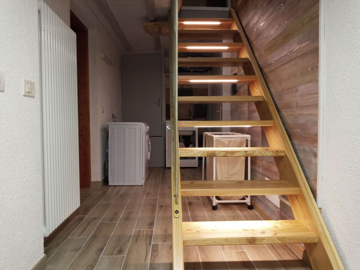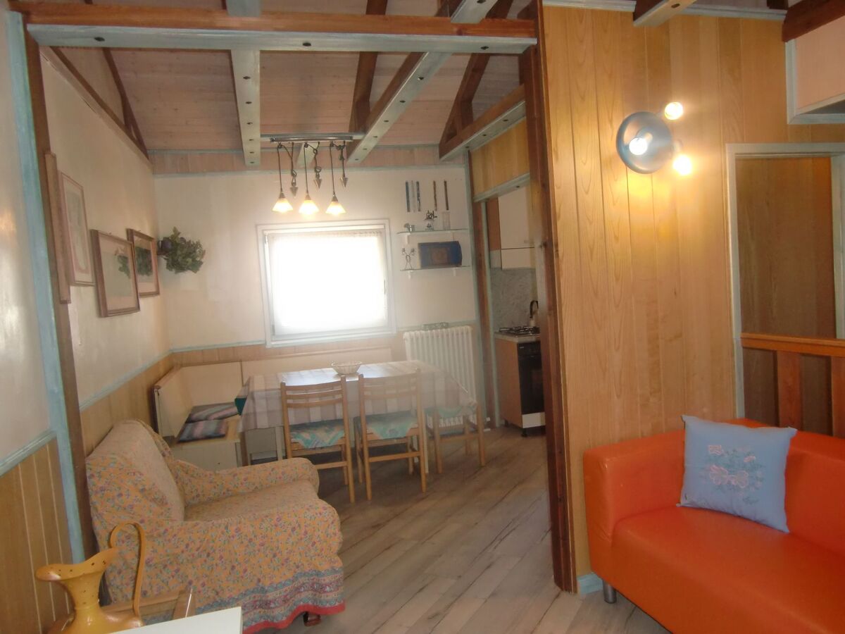 The internal wooden staircase leads to the first floor, where you will find a cosy room composed of a fully equipped kitchen, a living room with stube, armchairs, satellite TV, a further bathroom with toilet, a double bedroom and a twin-bedded room, completing the accommodation with everything you need for a comfortable and relaxing stay.