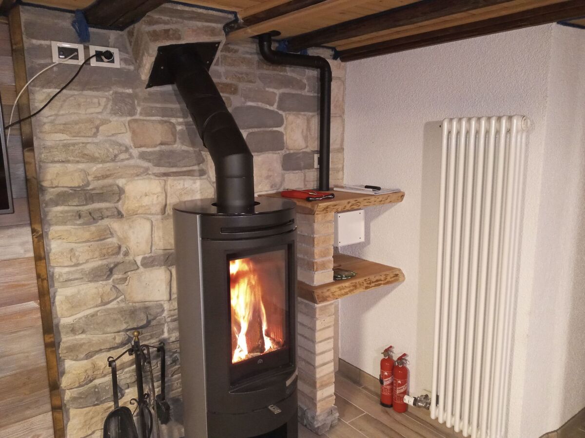 The masonry ground floor boasts a cosy living room with sofa, armchairs, wood-burning fireplace, table and chairs and satellite TV, as well as a washing machine for all your practical needs.
