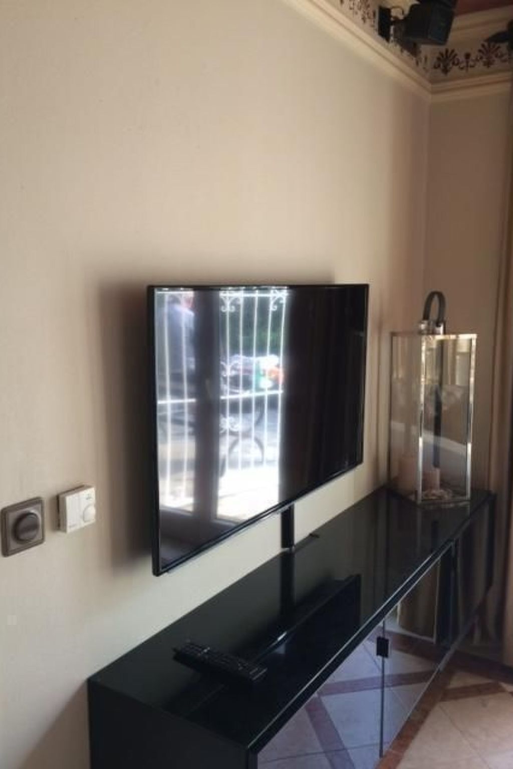 The living room has a comfortable corner sofa with a height-adjustable table, as well as a 48” LED TV with a satellite receiver.