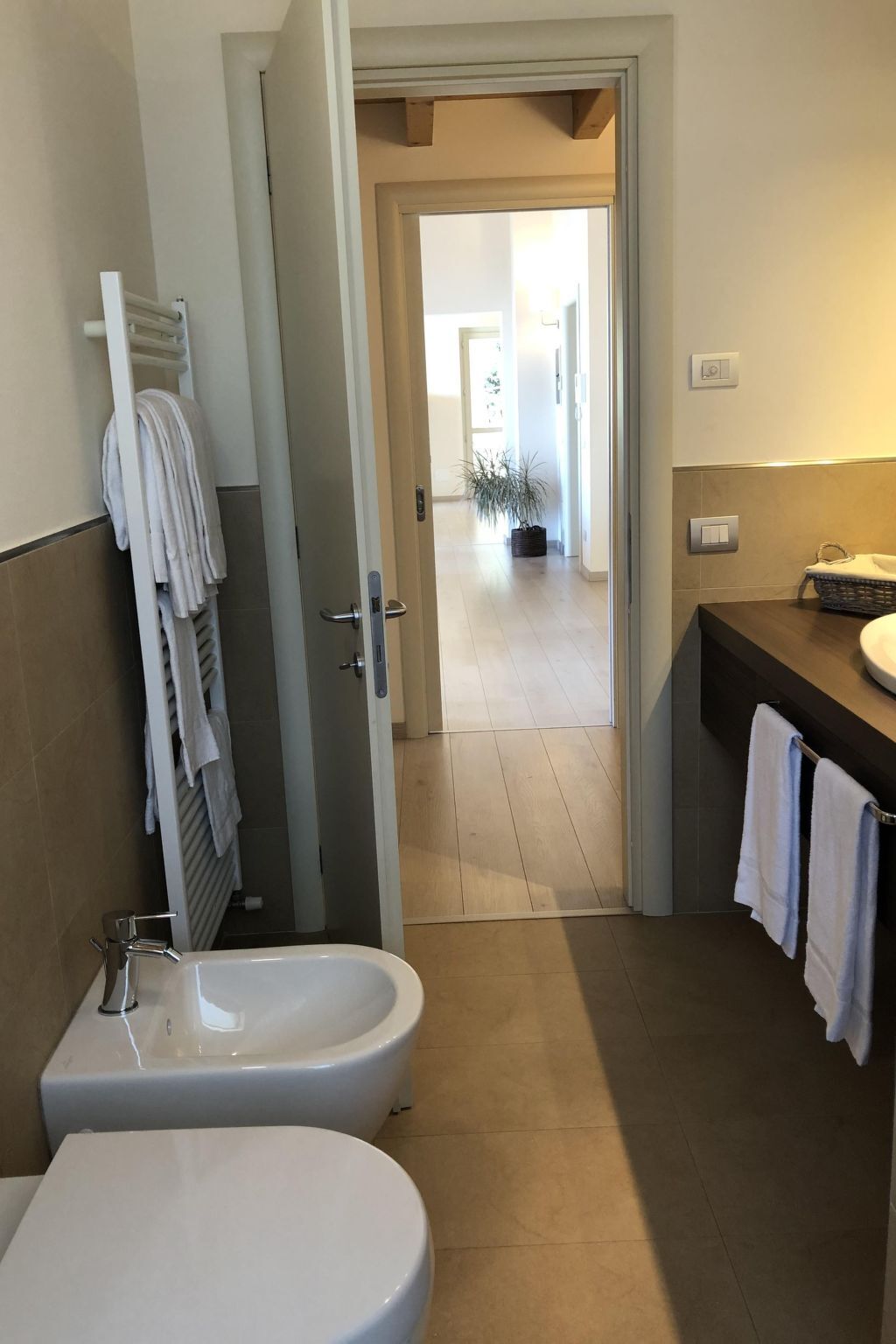 This is a delightful newly built flat situated on a hillside and surrounded by greenery.