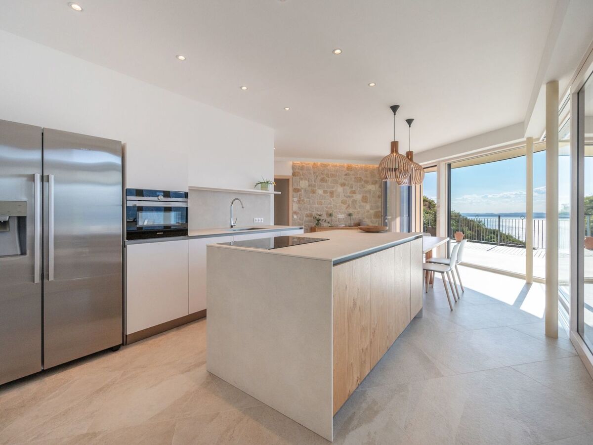 The highlight of the villa is the 200m2 panoramic terrace with outdoor table for 8 people, seating area and Napoleon gas barbecue.