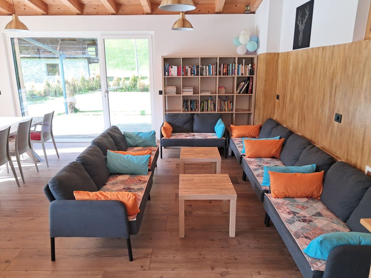 52 m2 dining and lounge area with a 6 metre long table, satellite TV, board games, WiFi, sitting area.