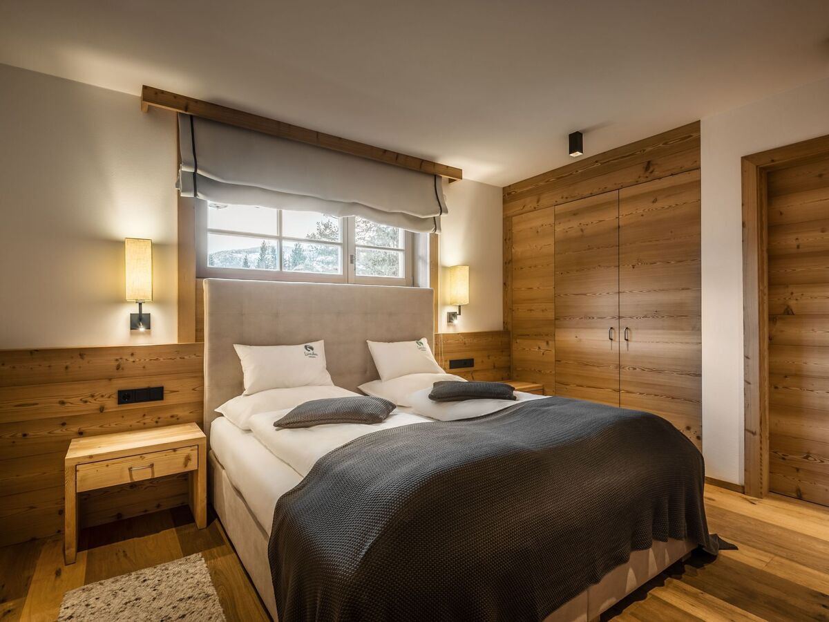 The 150 square metre chalet has four cosy bedrooms, each with its own bathroom.