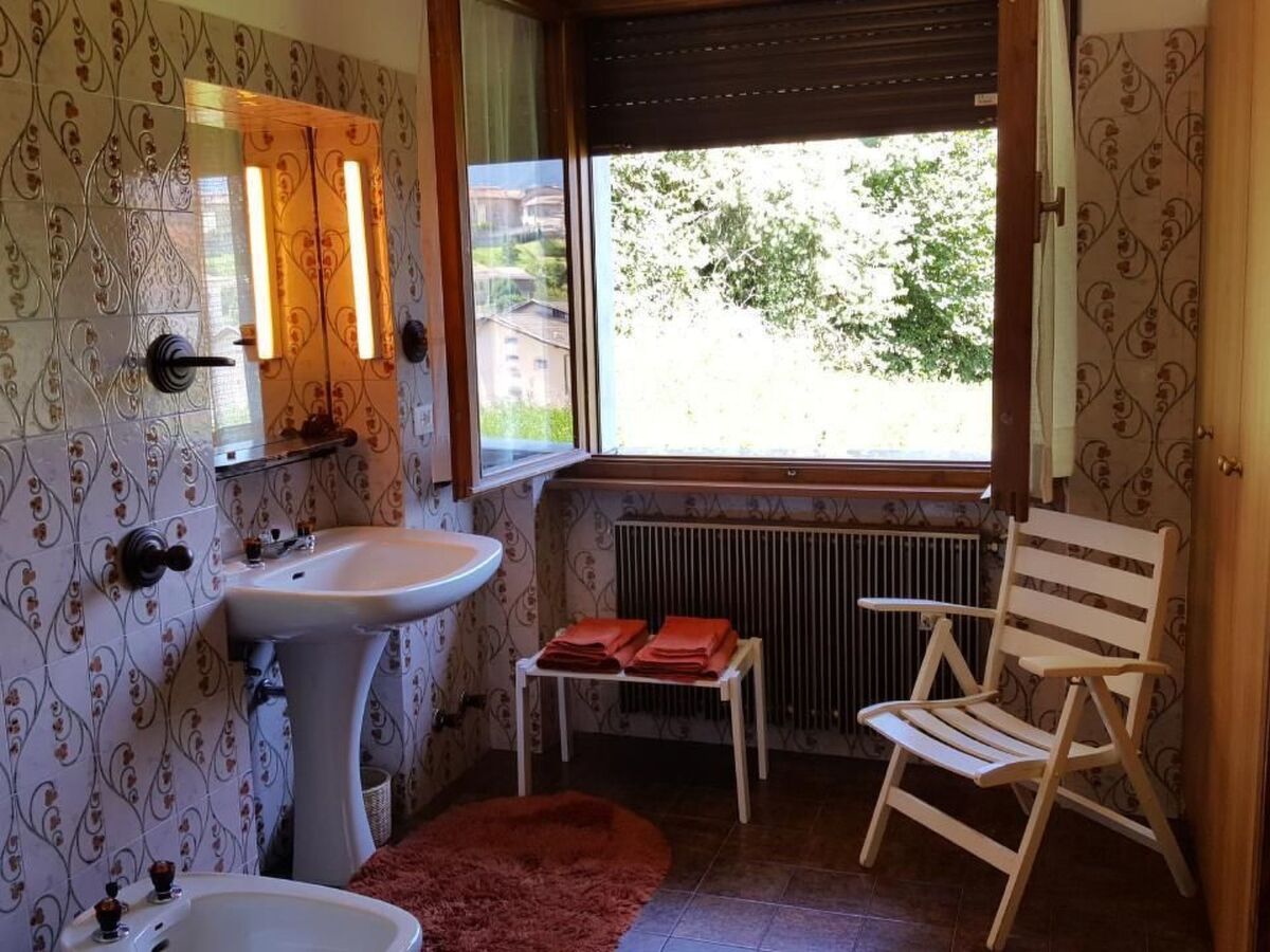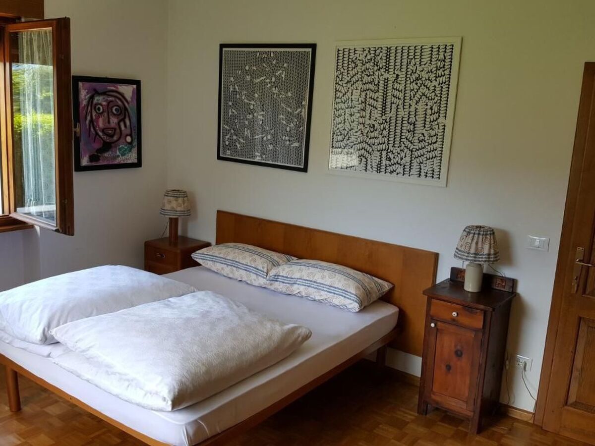 Three double rooms with dedicated bathroom, including a romantic suite with TV and view of the large lawn and the village of Tres.