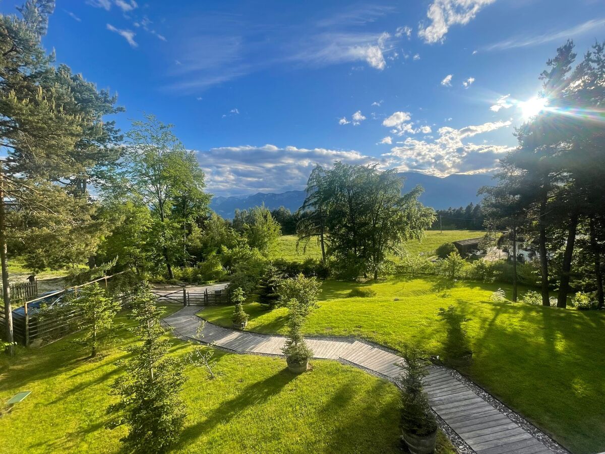 Il fascino di questa proprietà continua all', où s'étend un parc privé de 4500 mètres carrés, qui comprend en partie une forêt et est entièrement clôturé, offrant une vue panoramique remarquable.