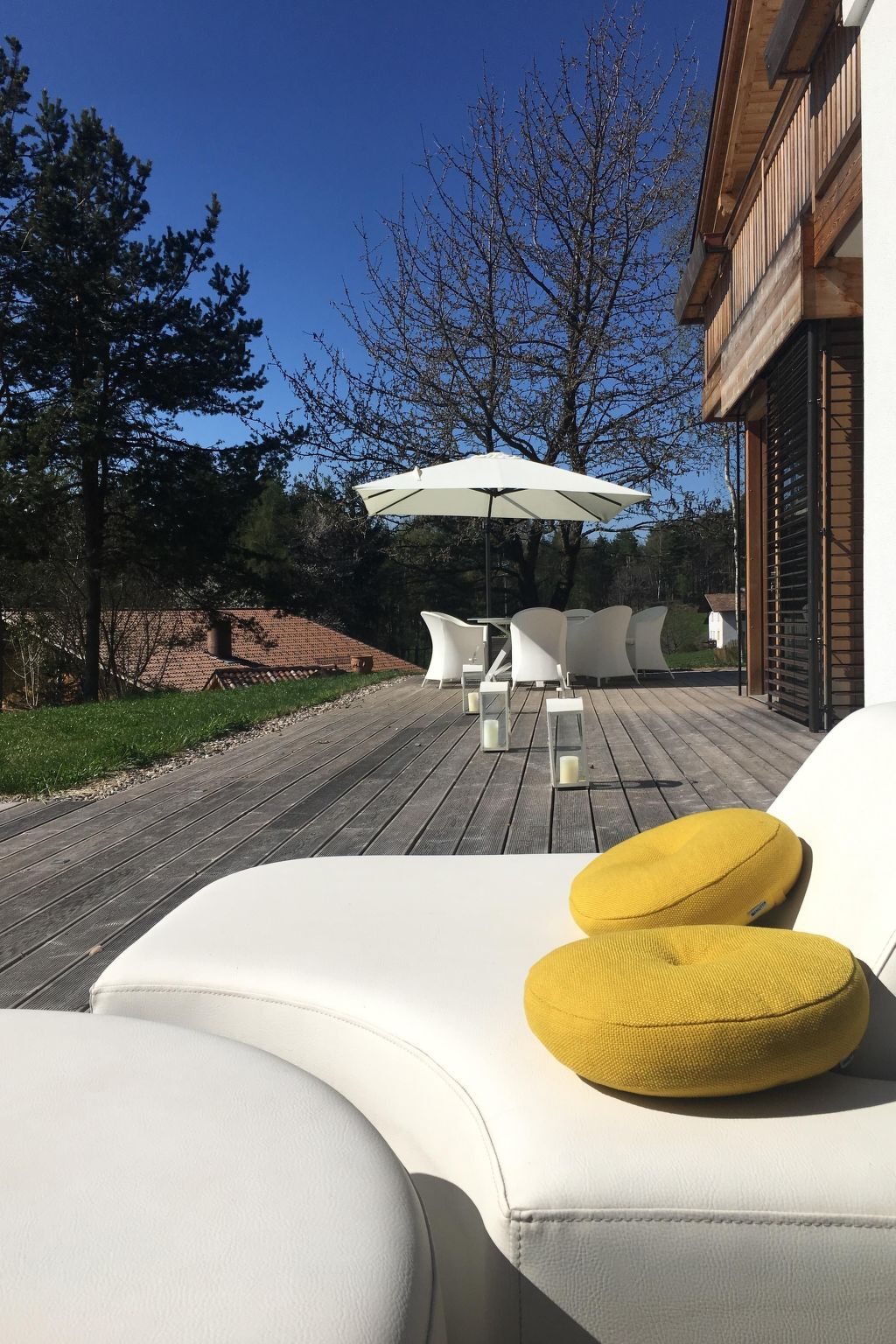 All'intérieur, le chalet dispose d'un extérieur'atmosfera calda e accogliente, con pavimenti e una tradizionale stube tirolese realizzati interamente in cirmolo.