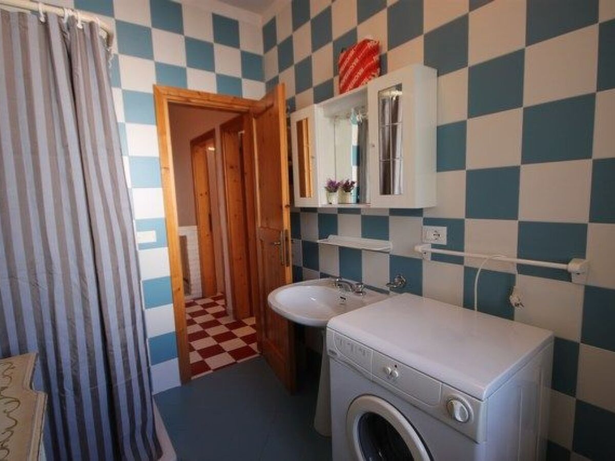 This four-roomed villa is structured vertically, with an entrance and 2 independent gardens and a spacious patio with a fireplace.Internally it is composed as follows: on the ground floor there is a spacious living room with a double sofa bed, a separate kitchen (with exit to the second garden), 1 bedroom with two singles and a service bathroom in the basement.