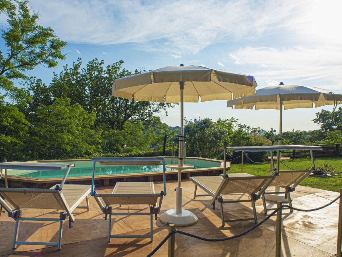 Swimming pool is open from 1st of May till 30th of September.Electric gatePrivate semi inground pool (8 x 4) with showerPing pong tableLounge areaOutside eating are with patio and barbecueGround floorLiving/dining room with fireplace, TV, wifi and StereoKitchen with 5 stoves, oven, microwave, dishwasher, kettle,toaster and coffee machineToiletFirst floor 2 Double bedded rooms (one of them is in a loft near the hallway)with air conditioning, 2 Twin bedded rooms with air conditioning 2 Shower roomsFiorenzuola di Focara (Restaurant) 200 metersFiorenzuola di Focara (Supermarket) 1 kmPesaro 10 KmGabicce Mare 7 KmRiccione 17 KmFano 22 KmRimini 32 KmUrbino 39 KmRepubblica di San Marino 49 Km