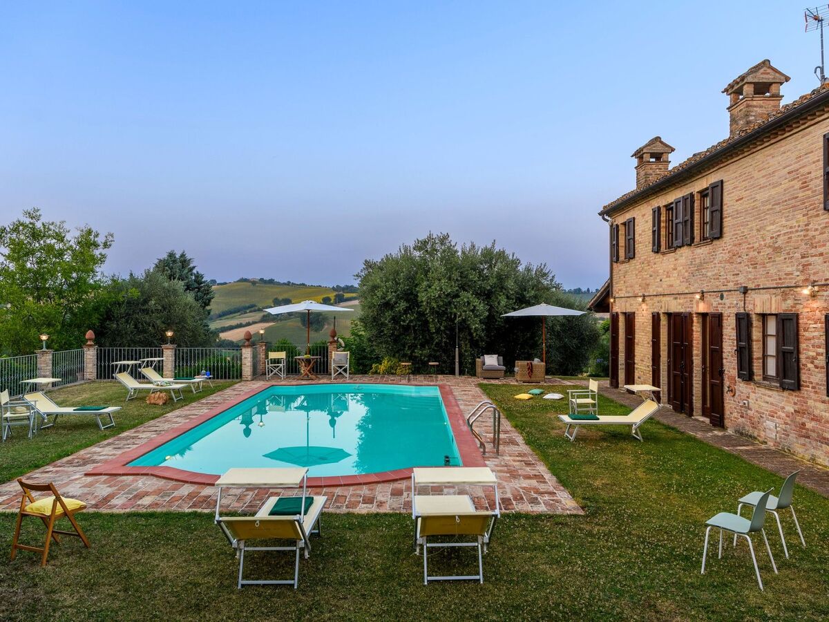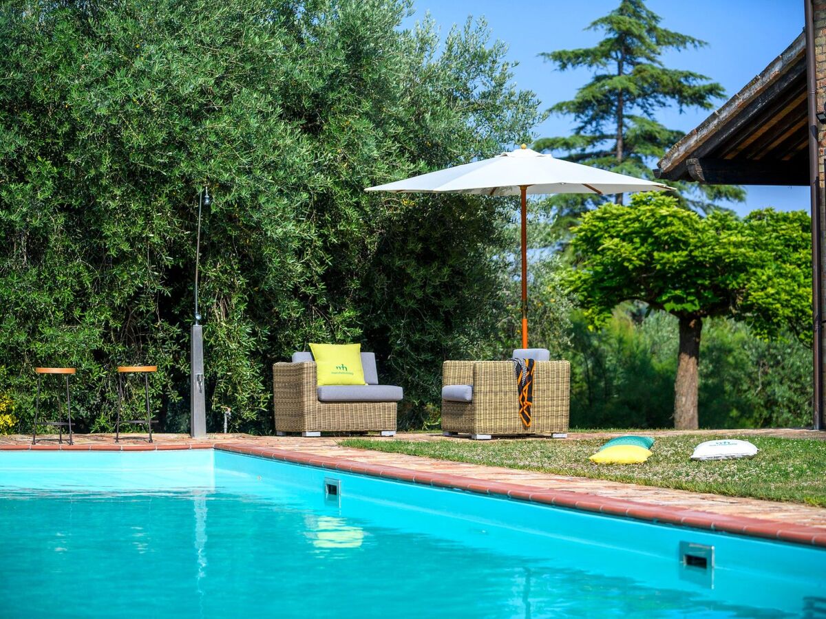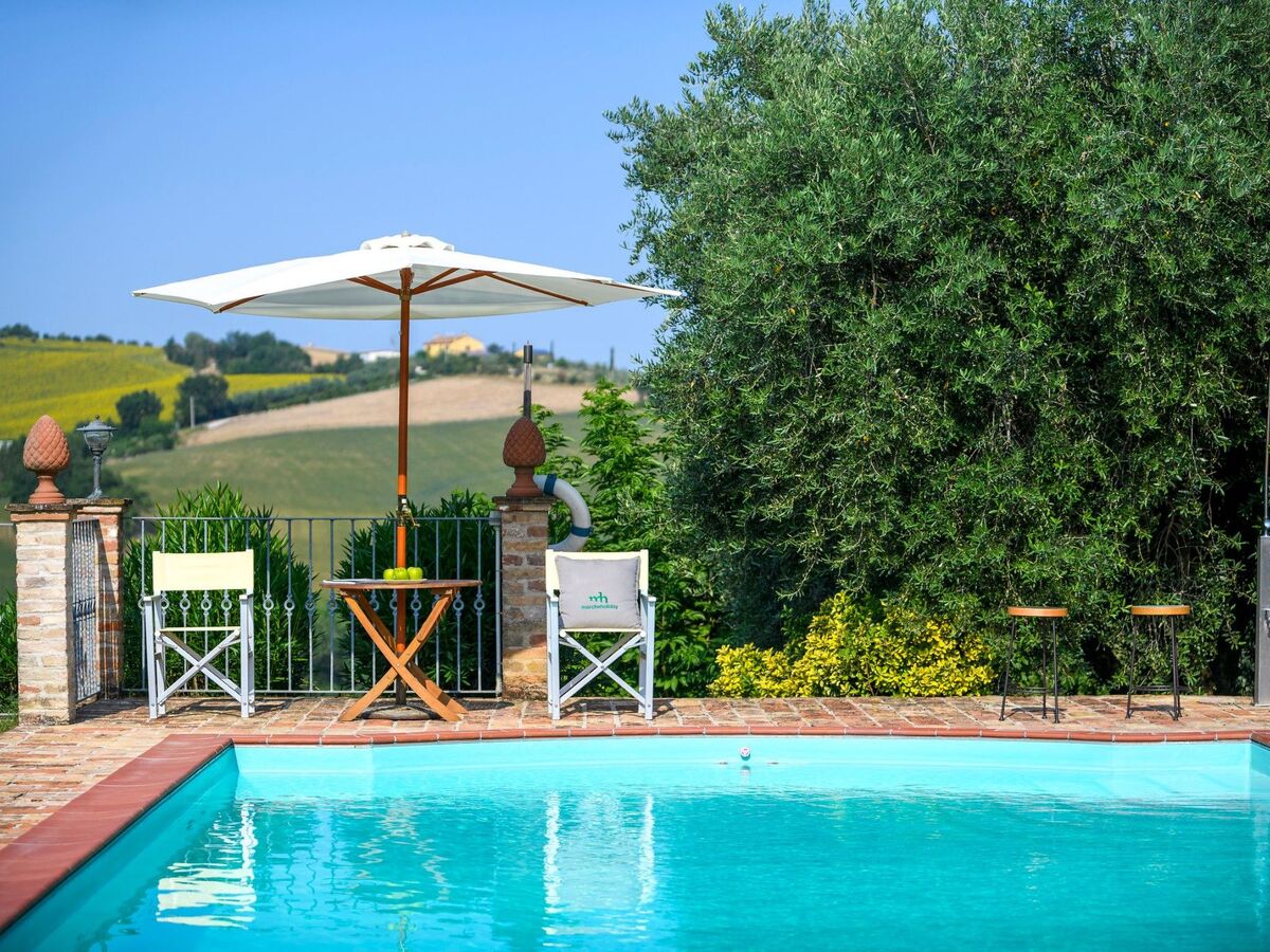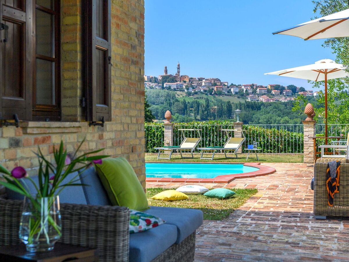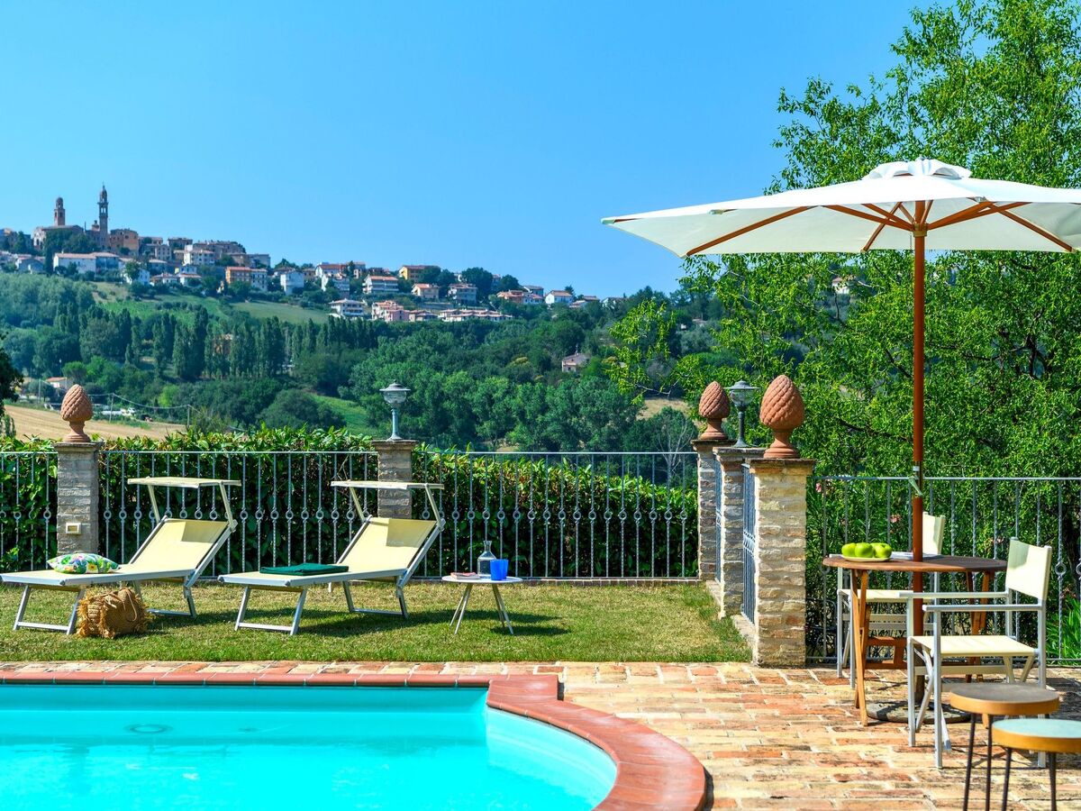 The swimming pool is located at the back of the property and boasts views of the nearby town of Mondavio.