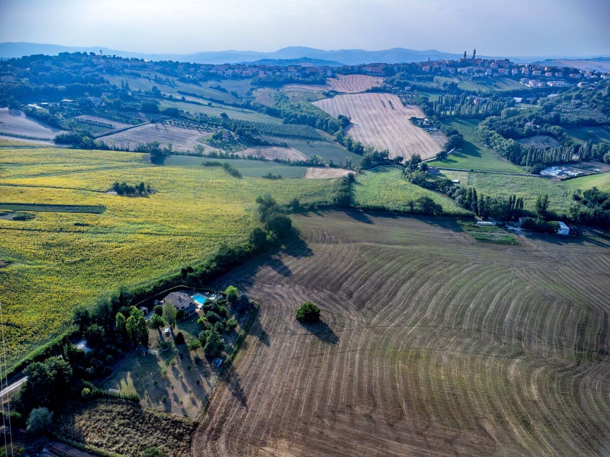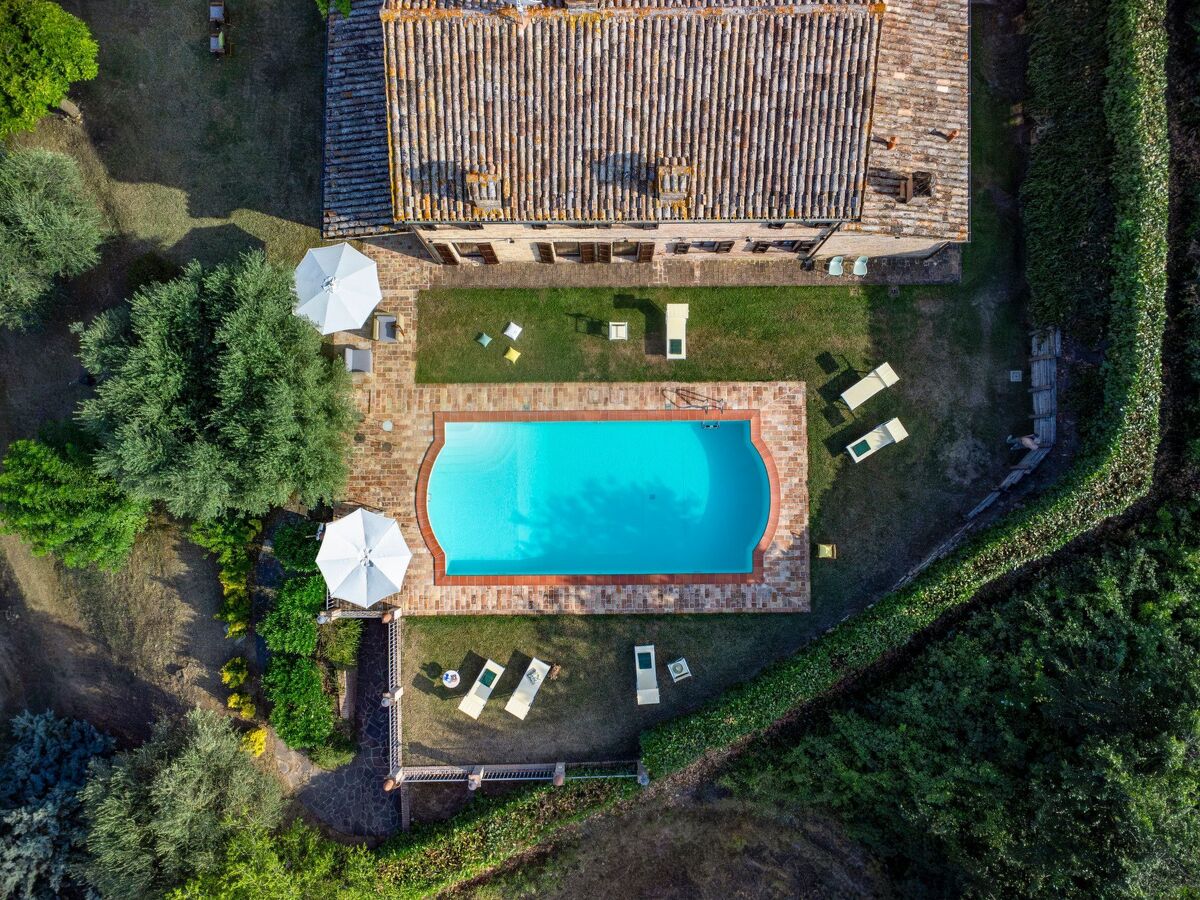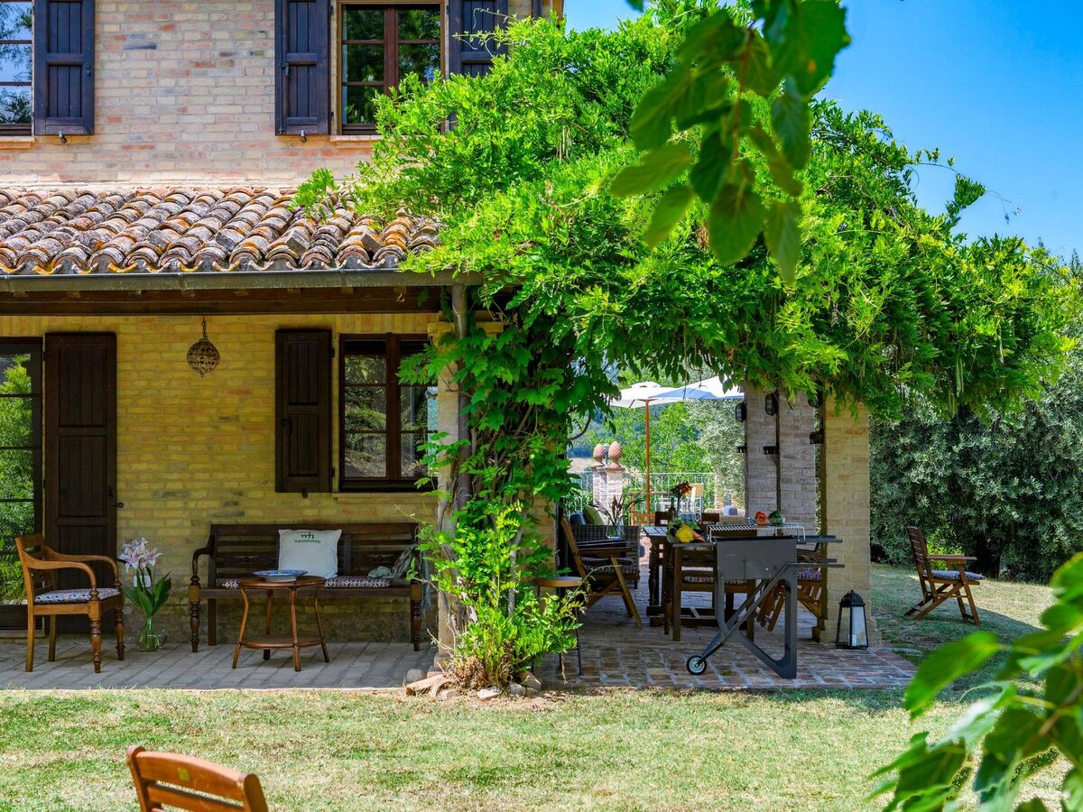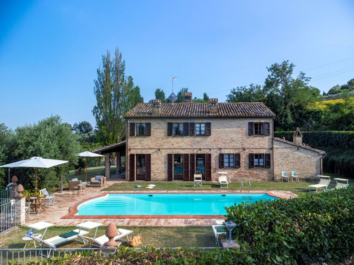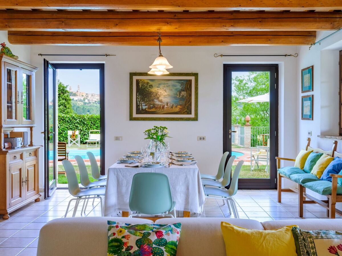The swimming pool is located at the back of the property and boasts views of the nearby town of Mondavio.
