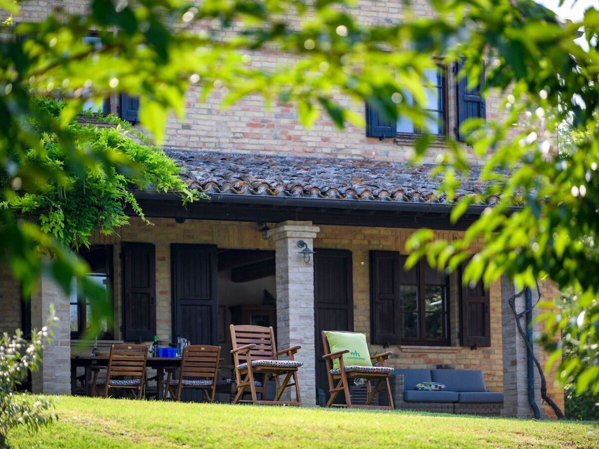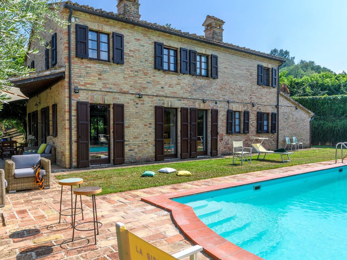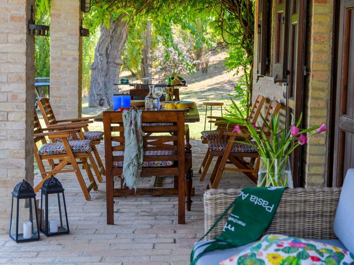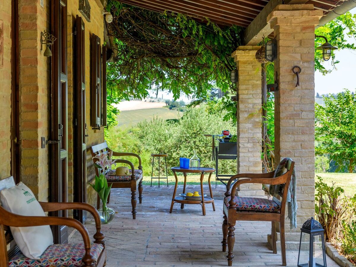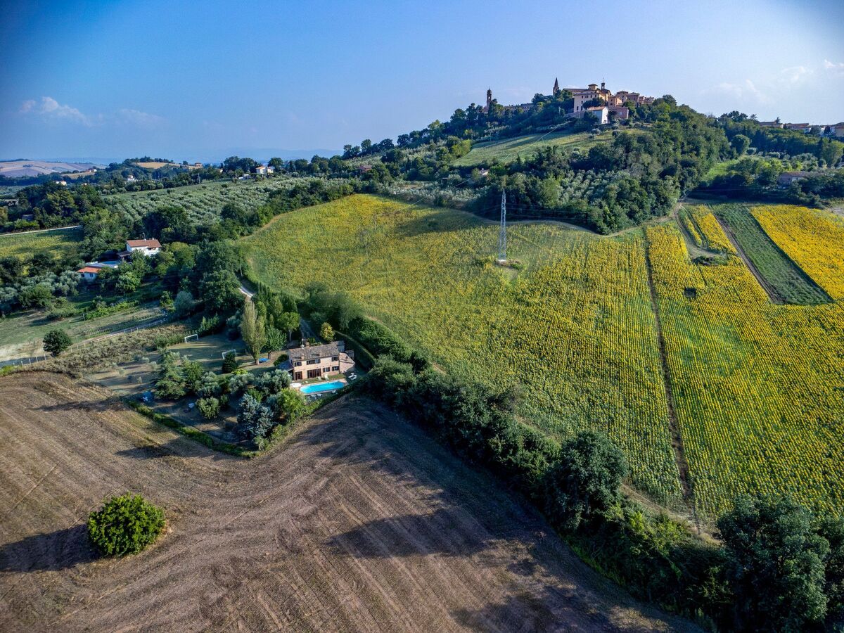 The swimming pool is located at the back of the property and boasts views of the nearby town of Mondavio.