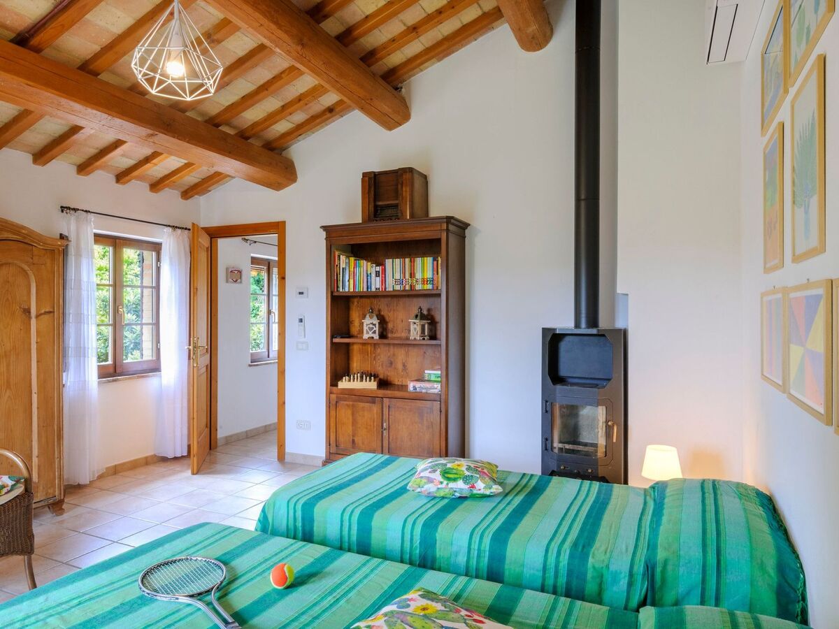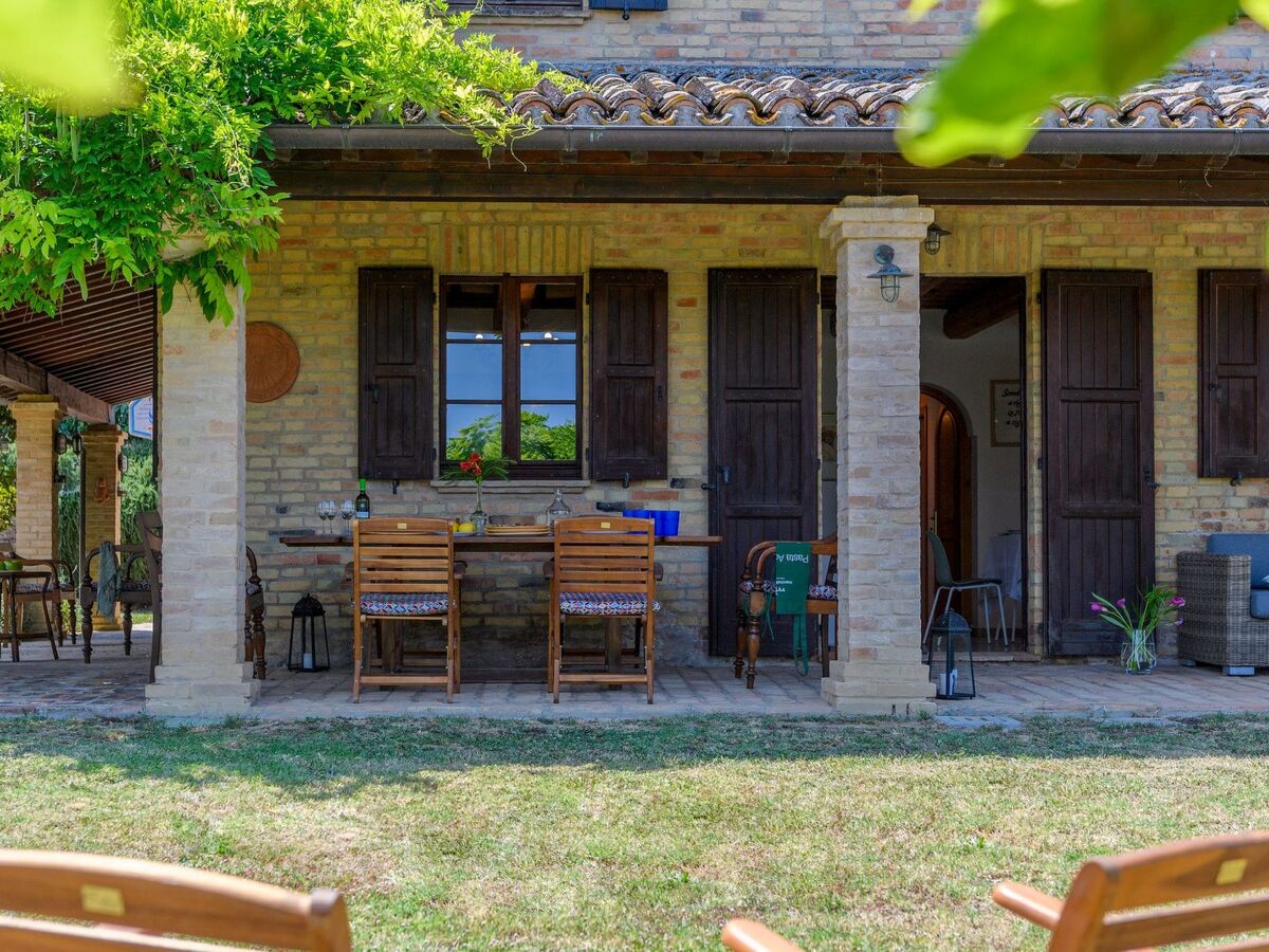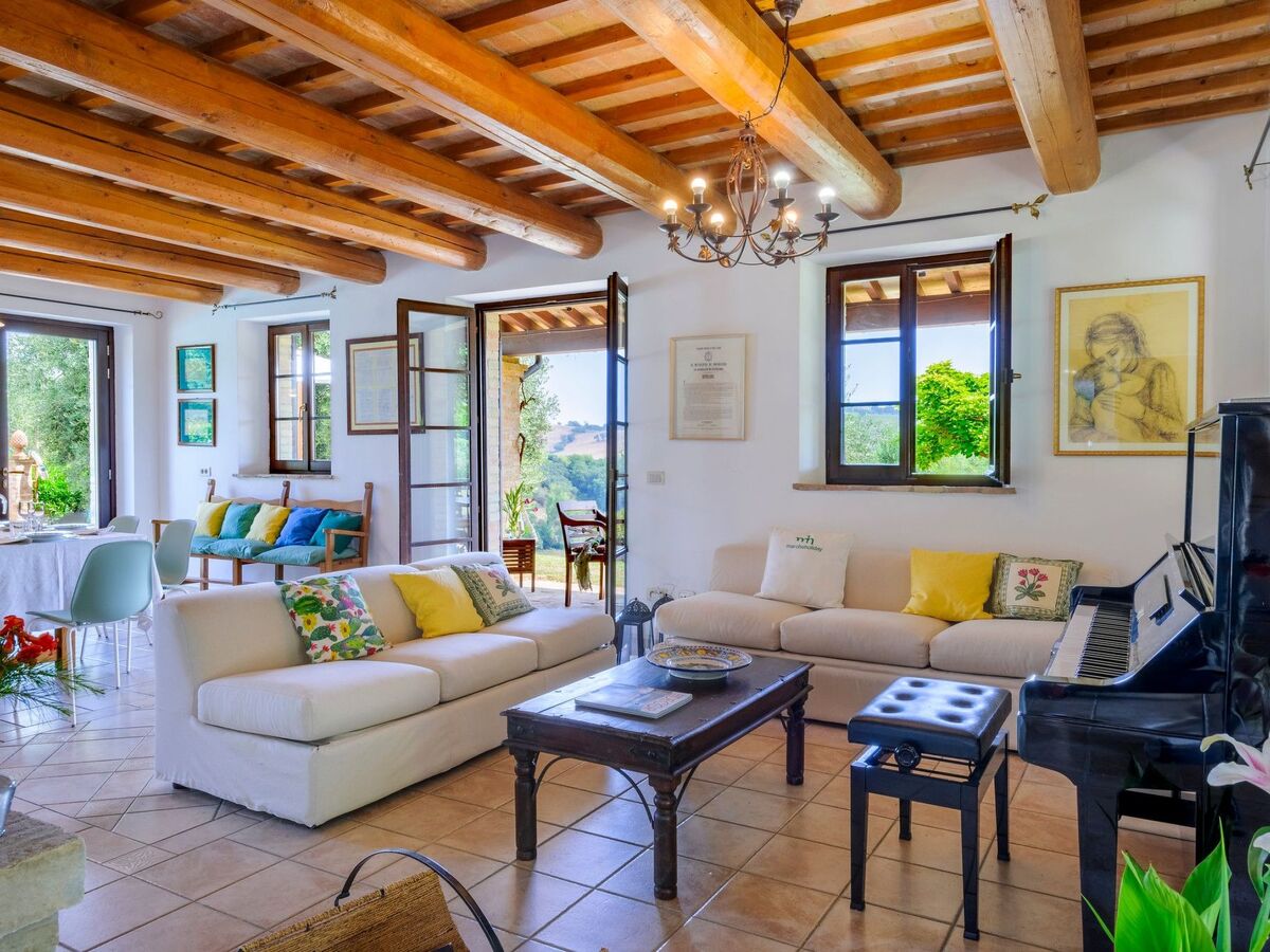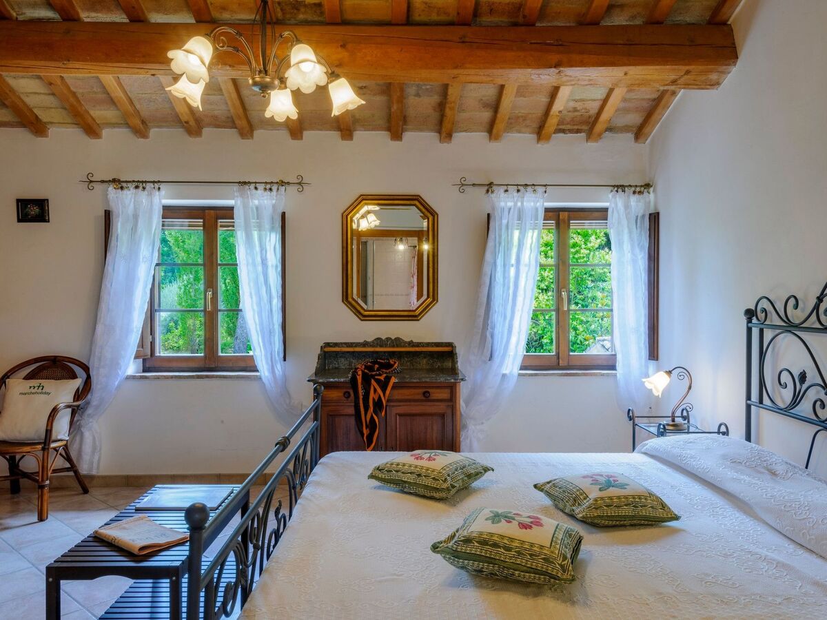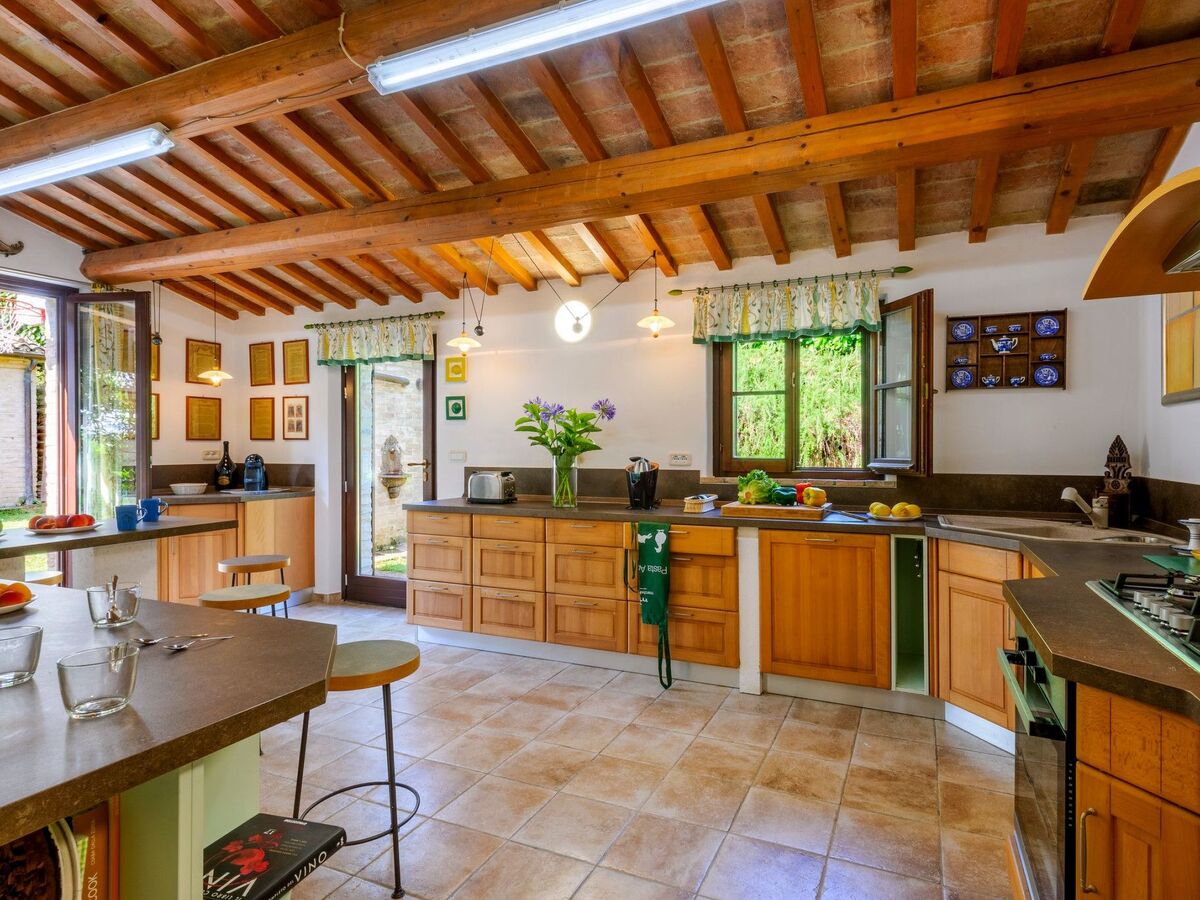 The swimming pool is located at the back of the property and boasts views of the nearby town of Mondavio.
