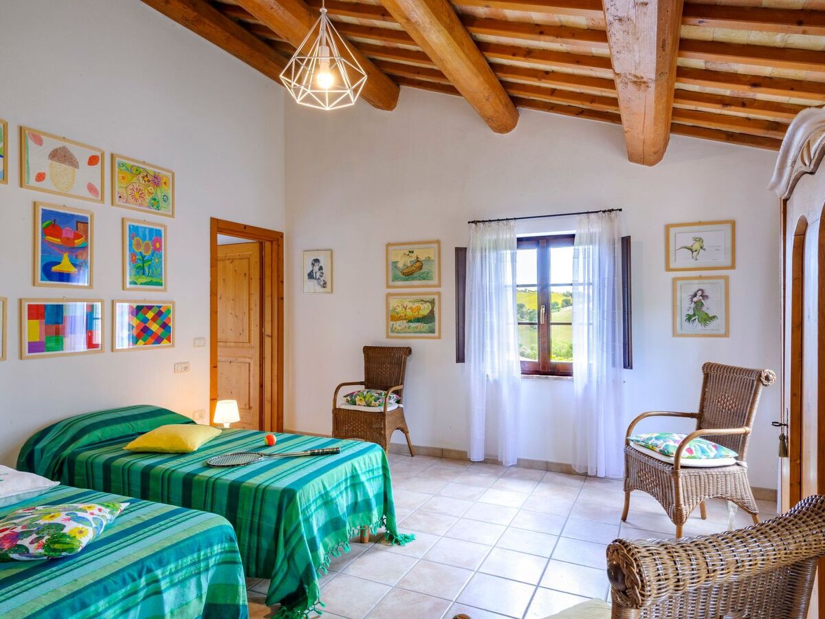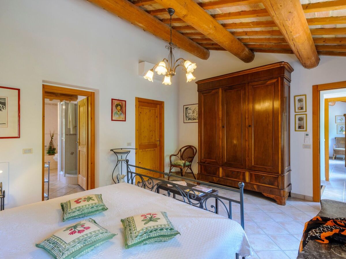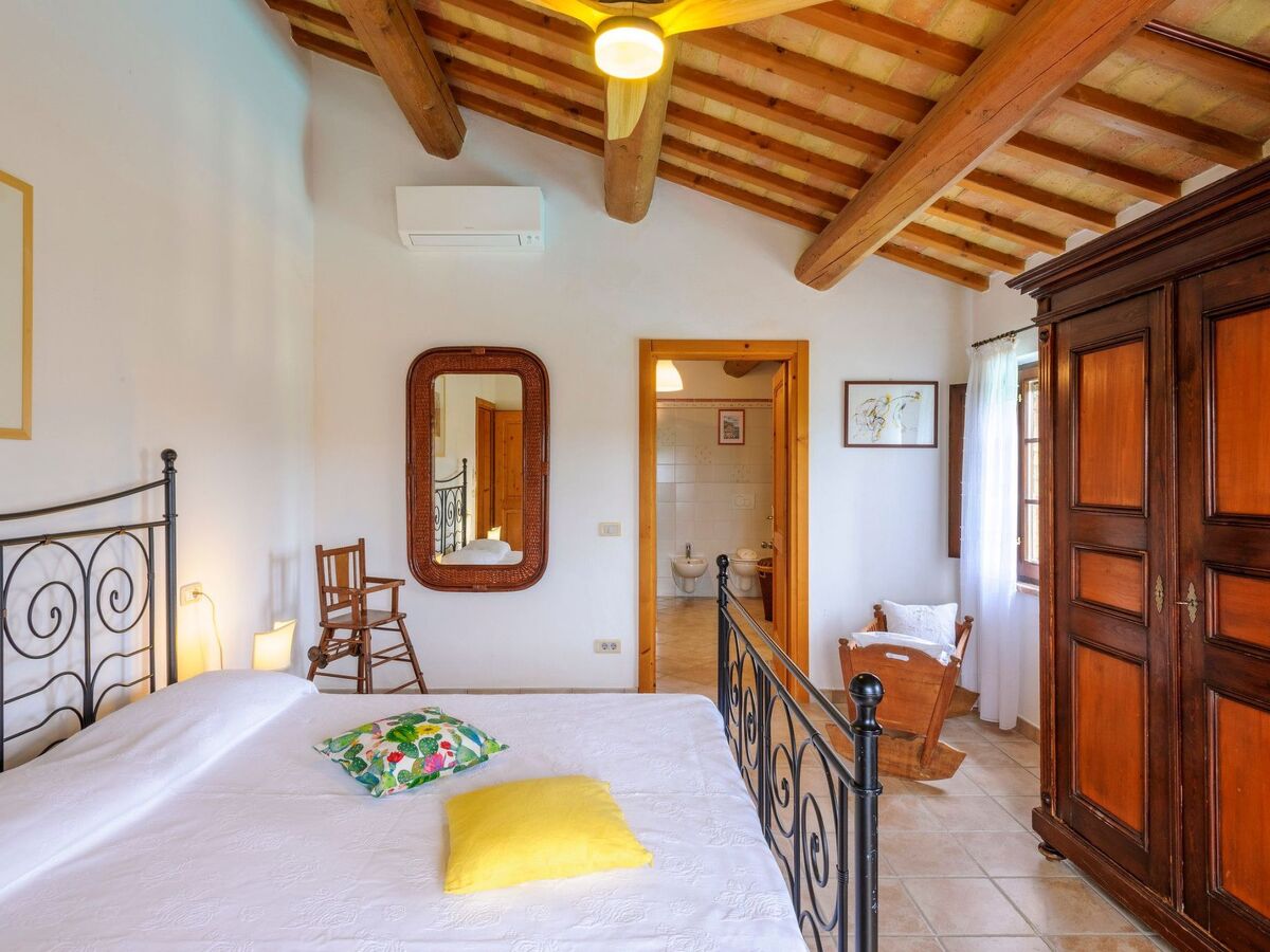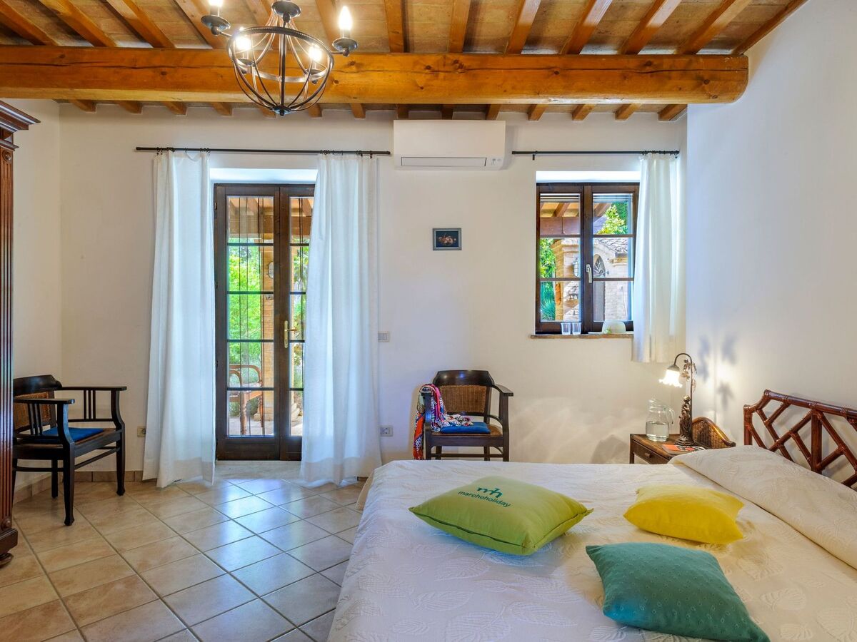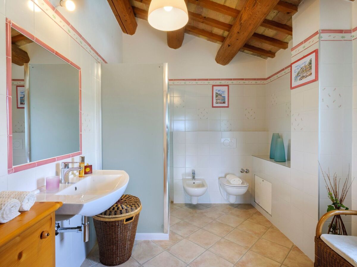 The swimming pool is located at the back of the property and boasts views of the nearby town of Mondavio.