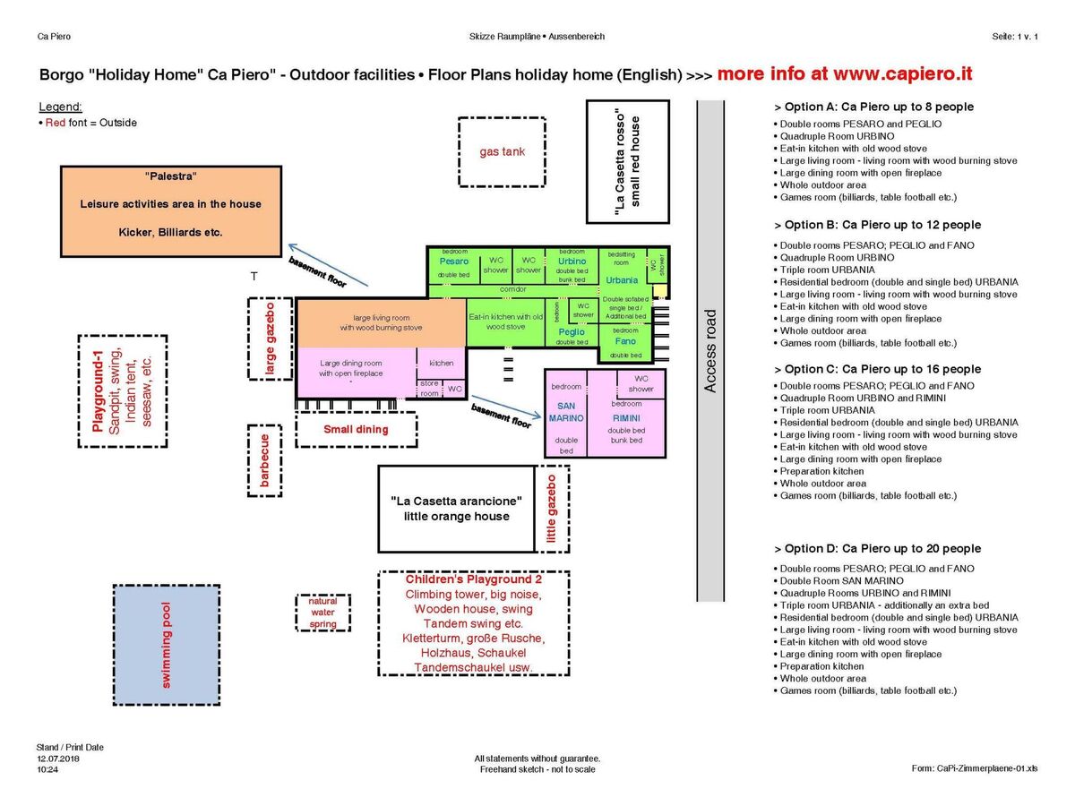 If you would like to rent the house for up to seventeen people, there are four bedrooms available on the ground floor: Two double rooms (double beds: 150 x 195 and 180 x 200), a triple room (single bed: 80 x 180, double bed: 160 x 190) and another triple room (single bed: 75 x 180, double bed: 180 x 200).