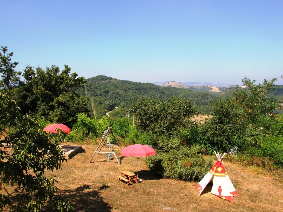 The house is located at the top of a hill and therefore offers a breathtaking view all around of the mountainous and hilly landscape of the Marche region.