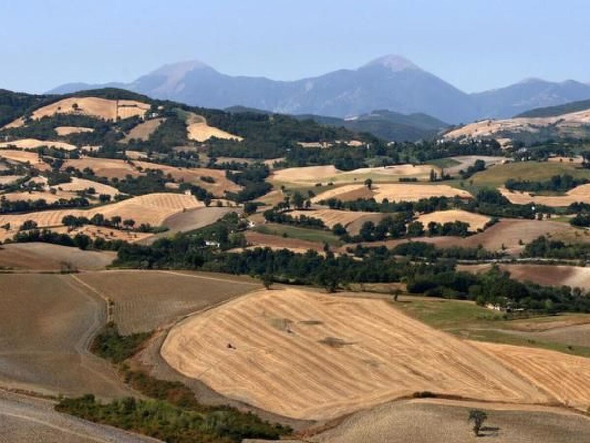 In atemberaubender Lage auf der Spitze eines Hügels, bietet Ca' Piero une vue panoramique sensationnelle sur le paysage de montagnes et de collines des Marches, avec des journées claires où l'on peut même voir la mer et la Toscane voisine.