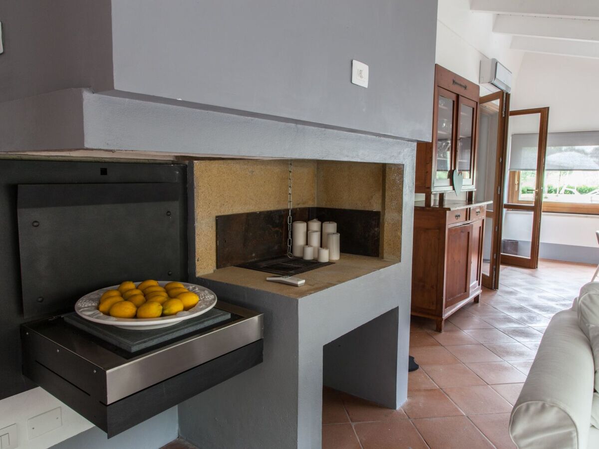 The spacious and bright living area is adorned with windows overlooking the pool and a lounge with a fireplace, ideal for moments of relaxation and conviviality.
