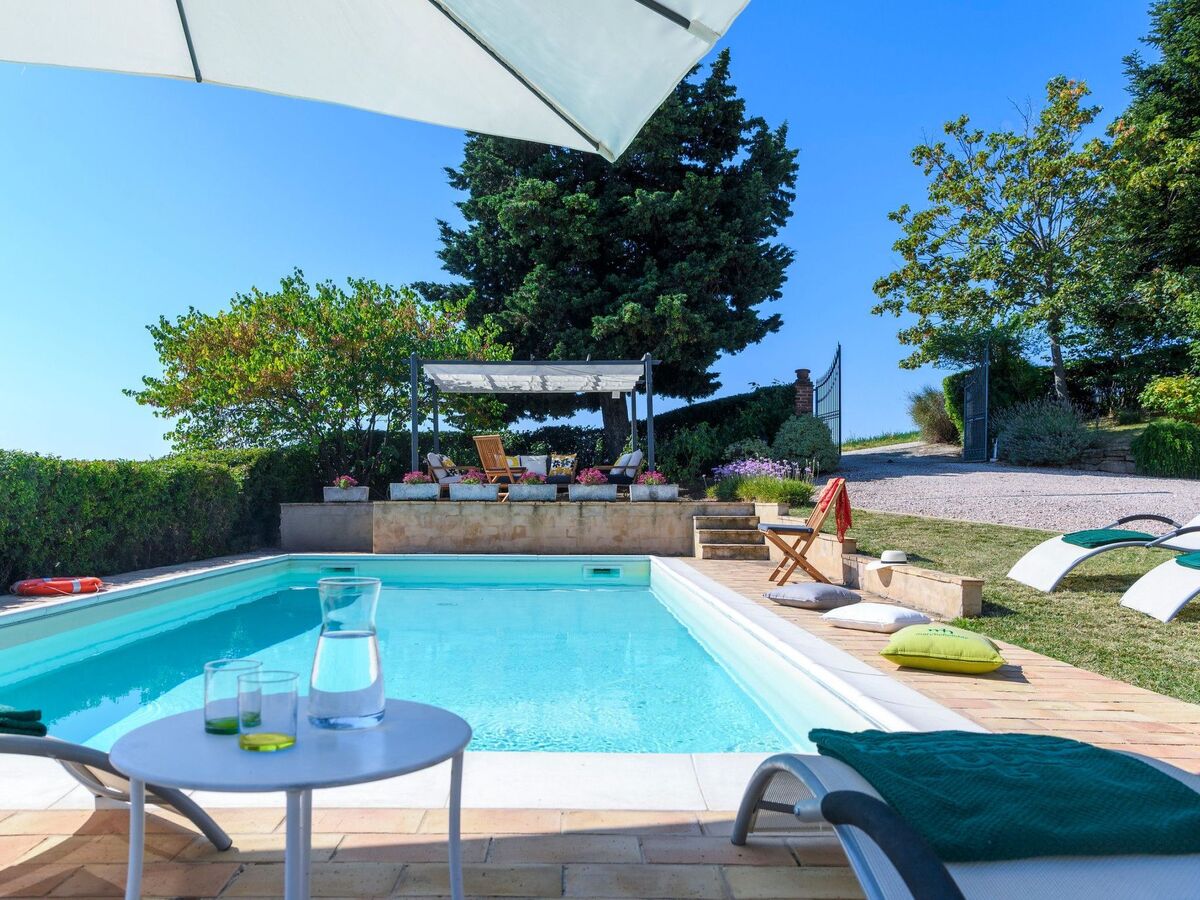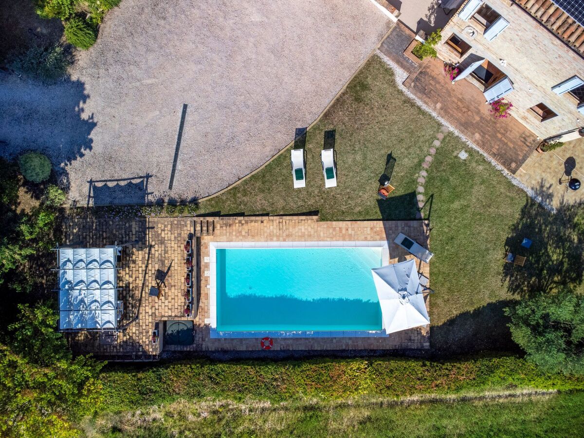From the porch and swimming pool of Casa Felicità you can enjoy the beautiful view of the typical hills of the Marche countryside.