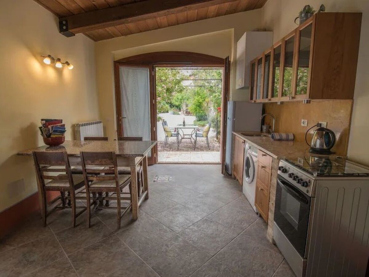 The pool area, completely enclosed and surrounded by olive trees, offers breathtaking views and is equipped with a large solarium, quality sun loungers, a large shaded gazebo and a solar-powered shower, open from the first weekend in May until mid-October.